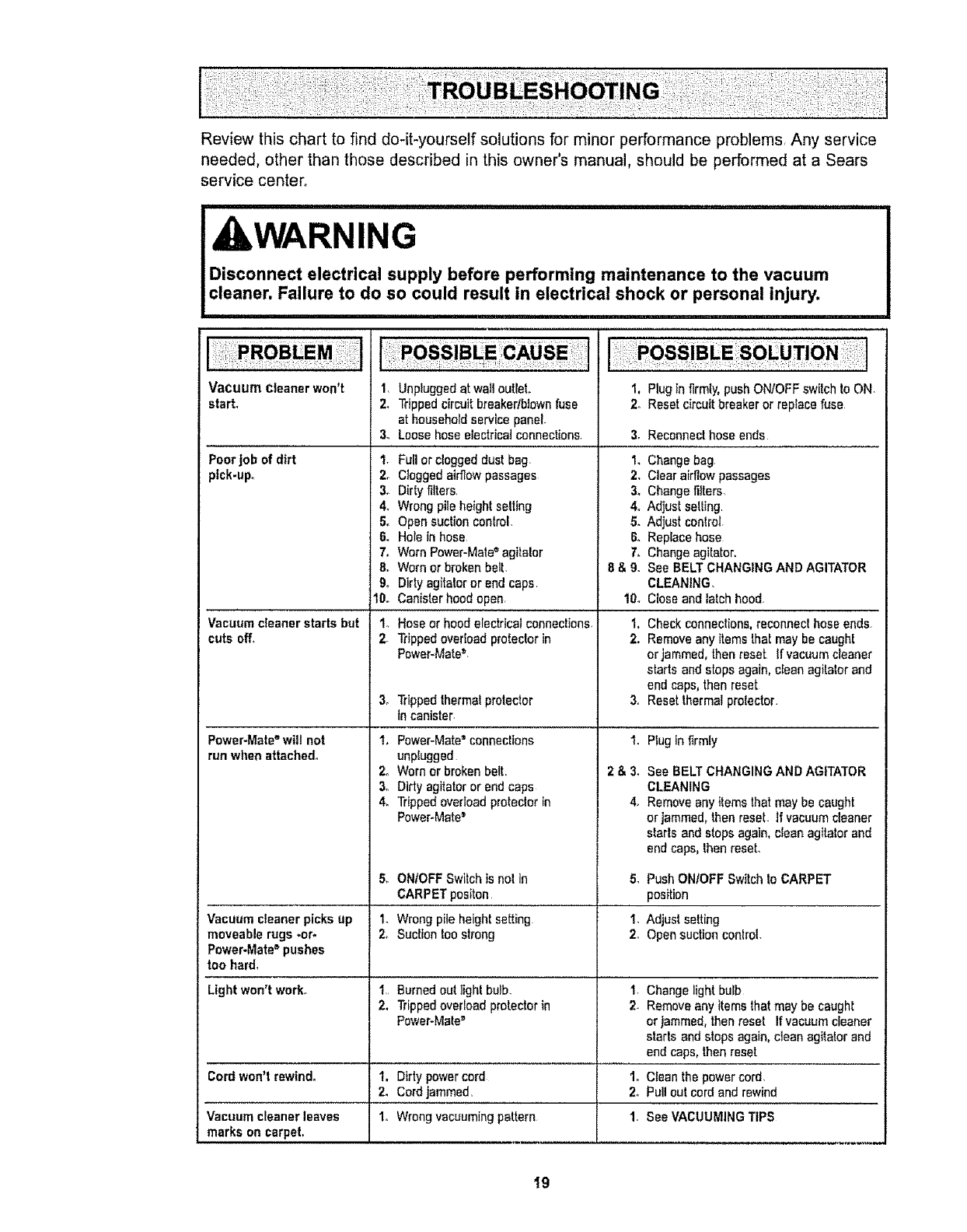 For more information about vacuum cleaner care and operation, call your nearest Sears store,