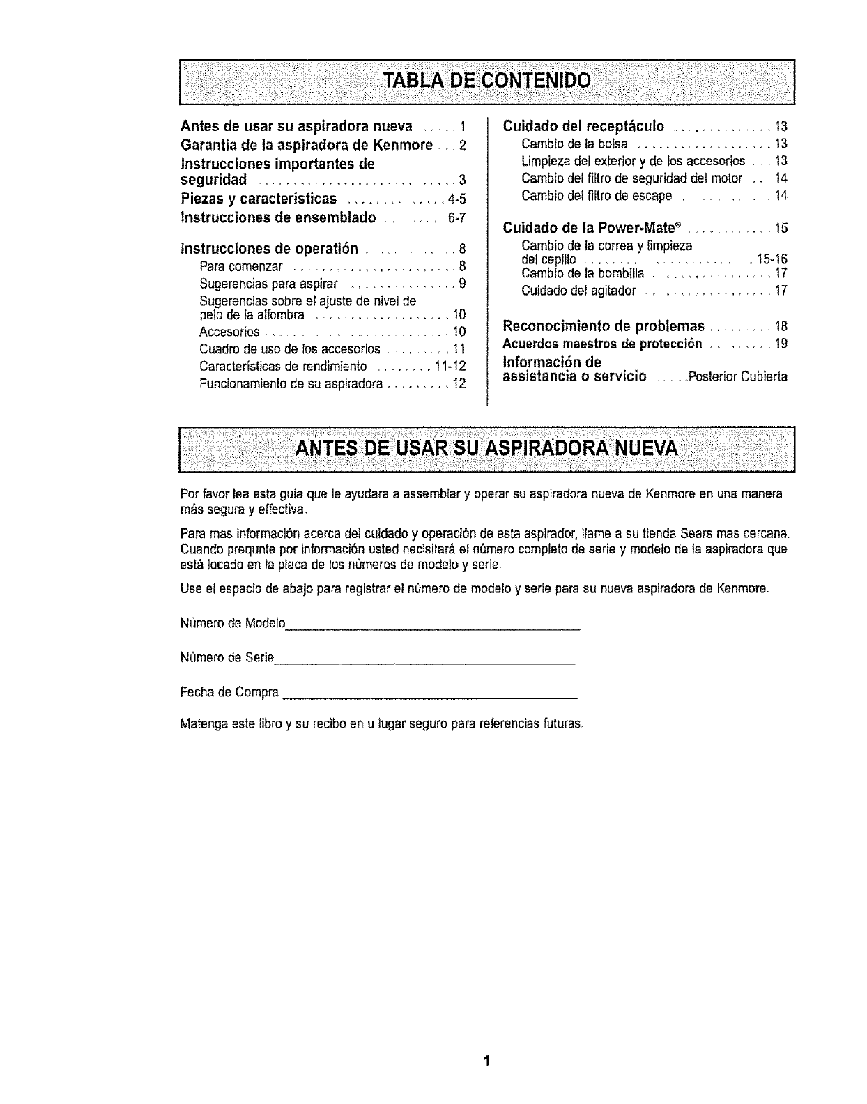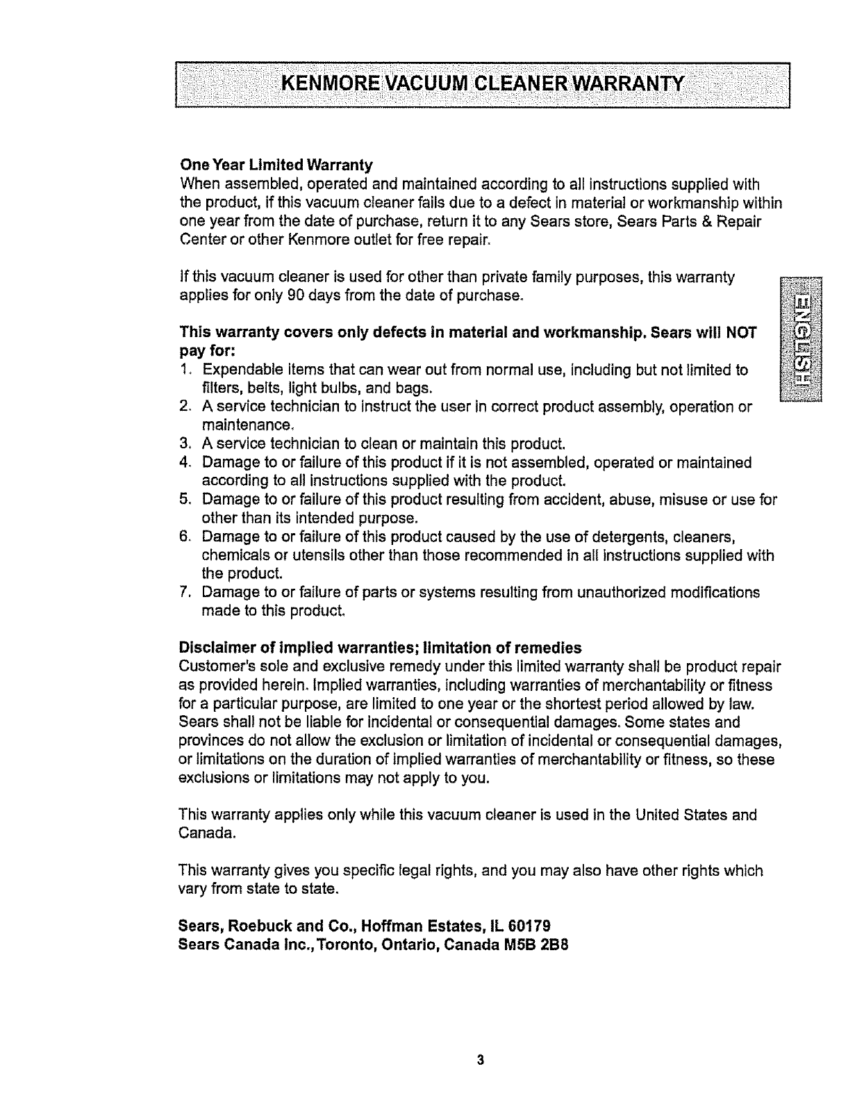 Kenmore Vacuum Cleaner Warranty ..... 3
