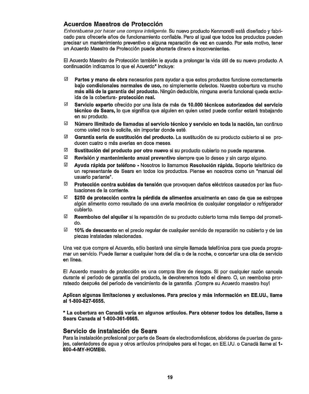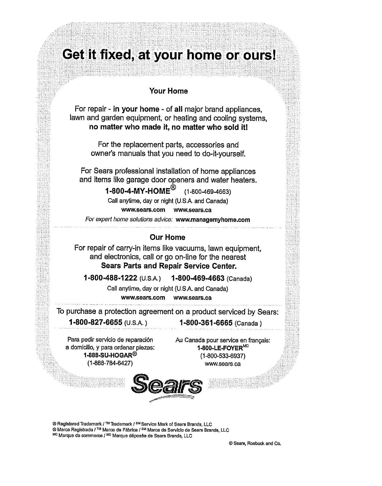 un representante de Sears en todos tos productos. Piense en nosotros como un "manual del