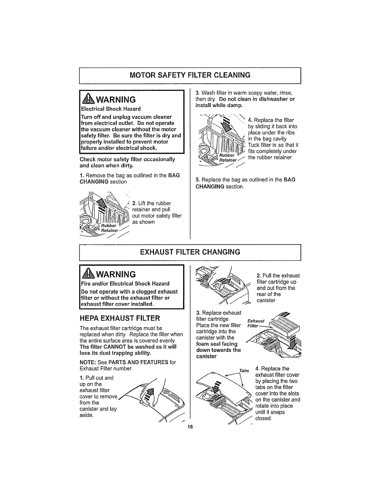 Motor Safety Filter Cleaning ............ !6