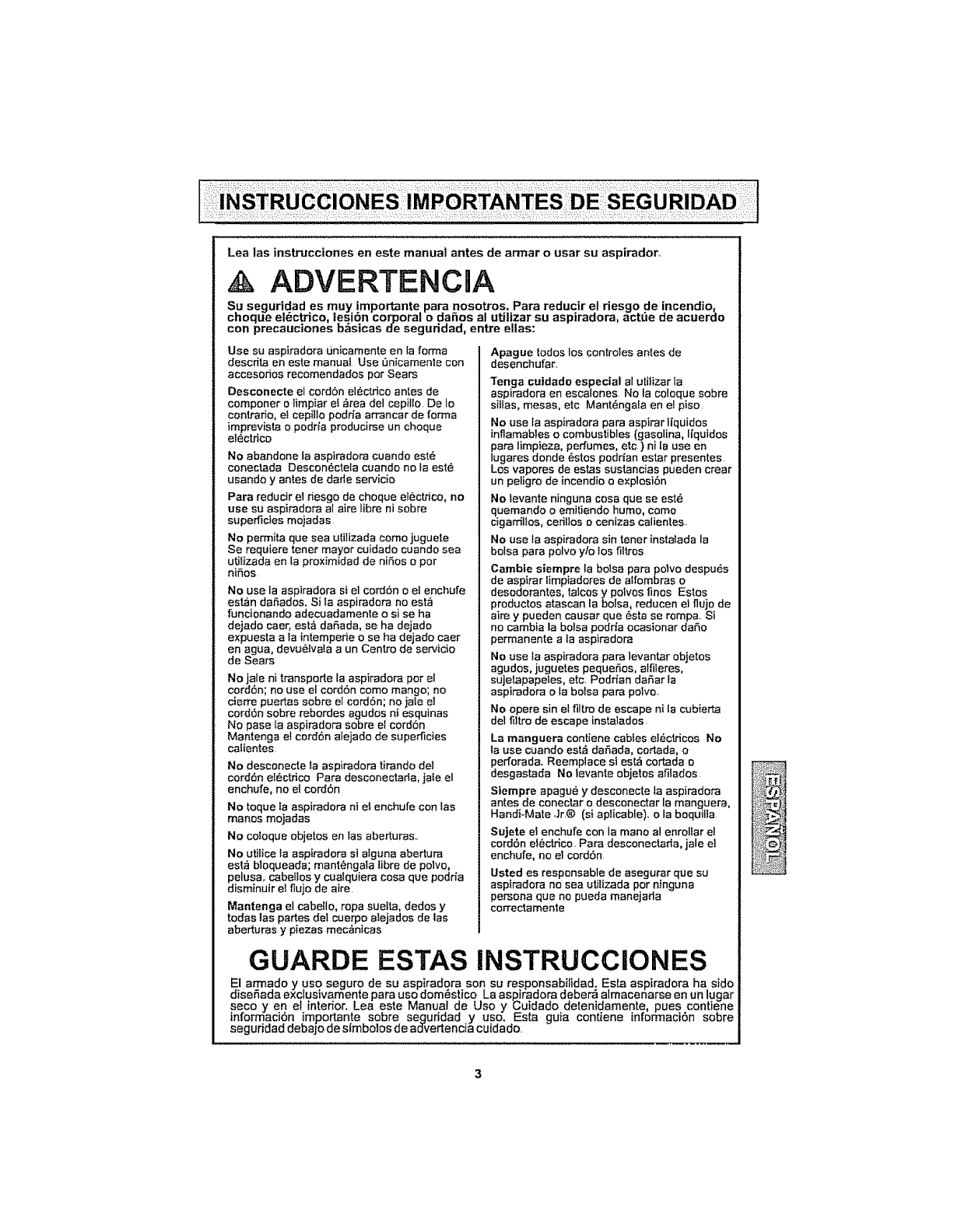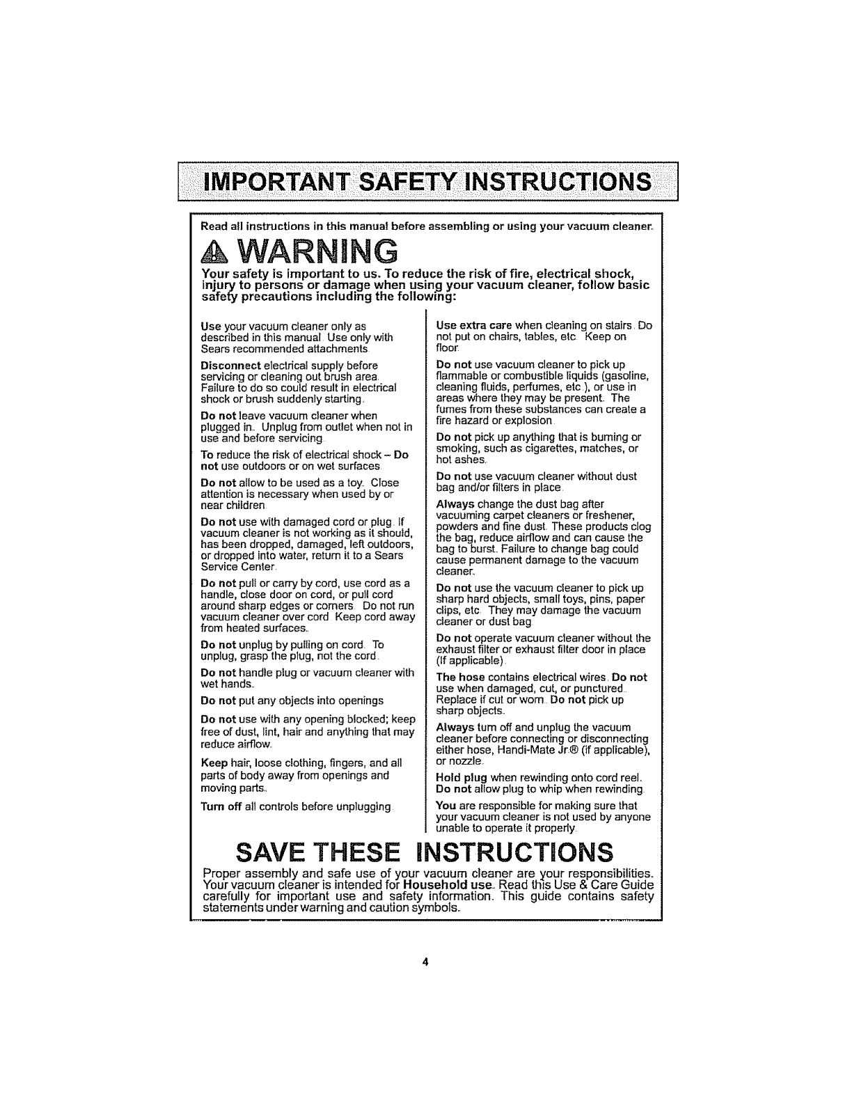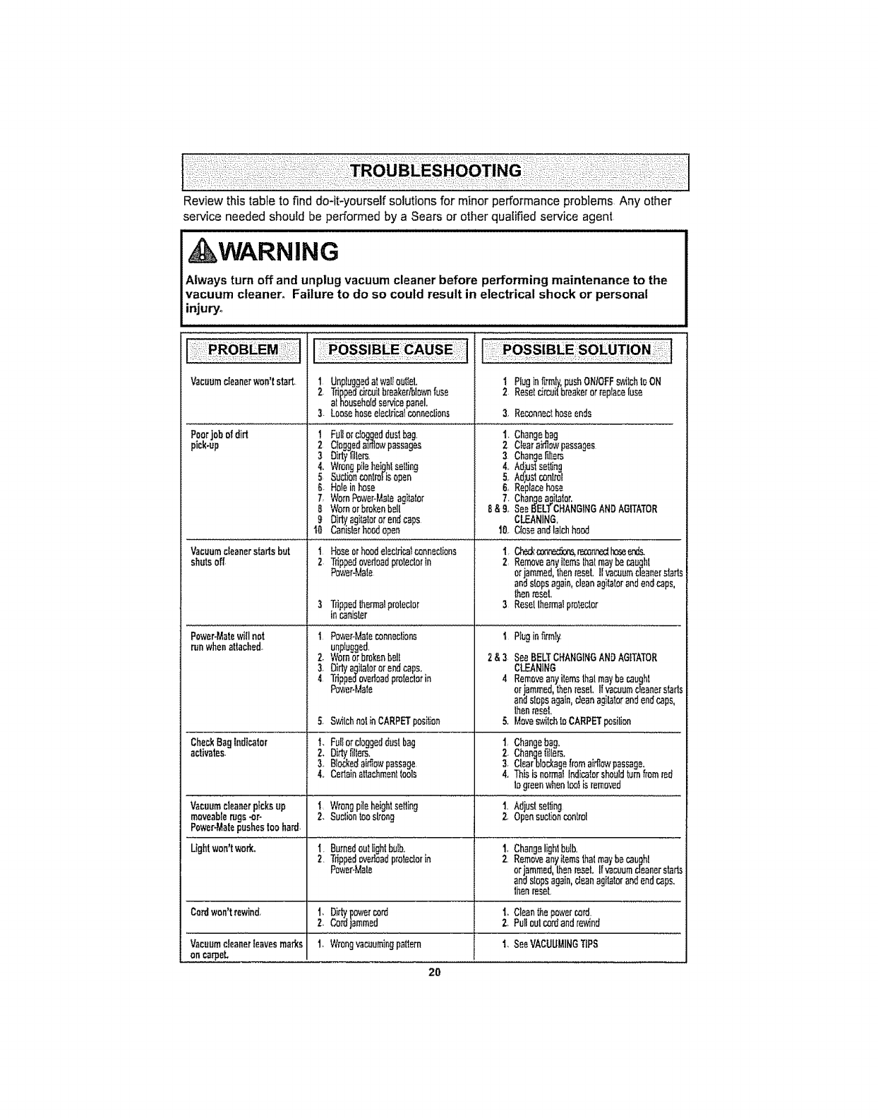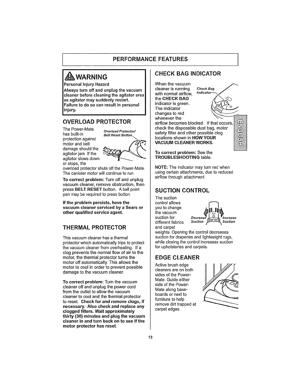 For more information about vacuum cleaner care and operation, call your nearest Sears