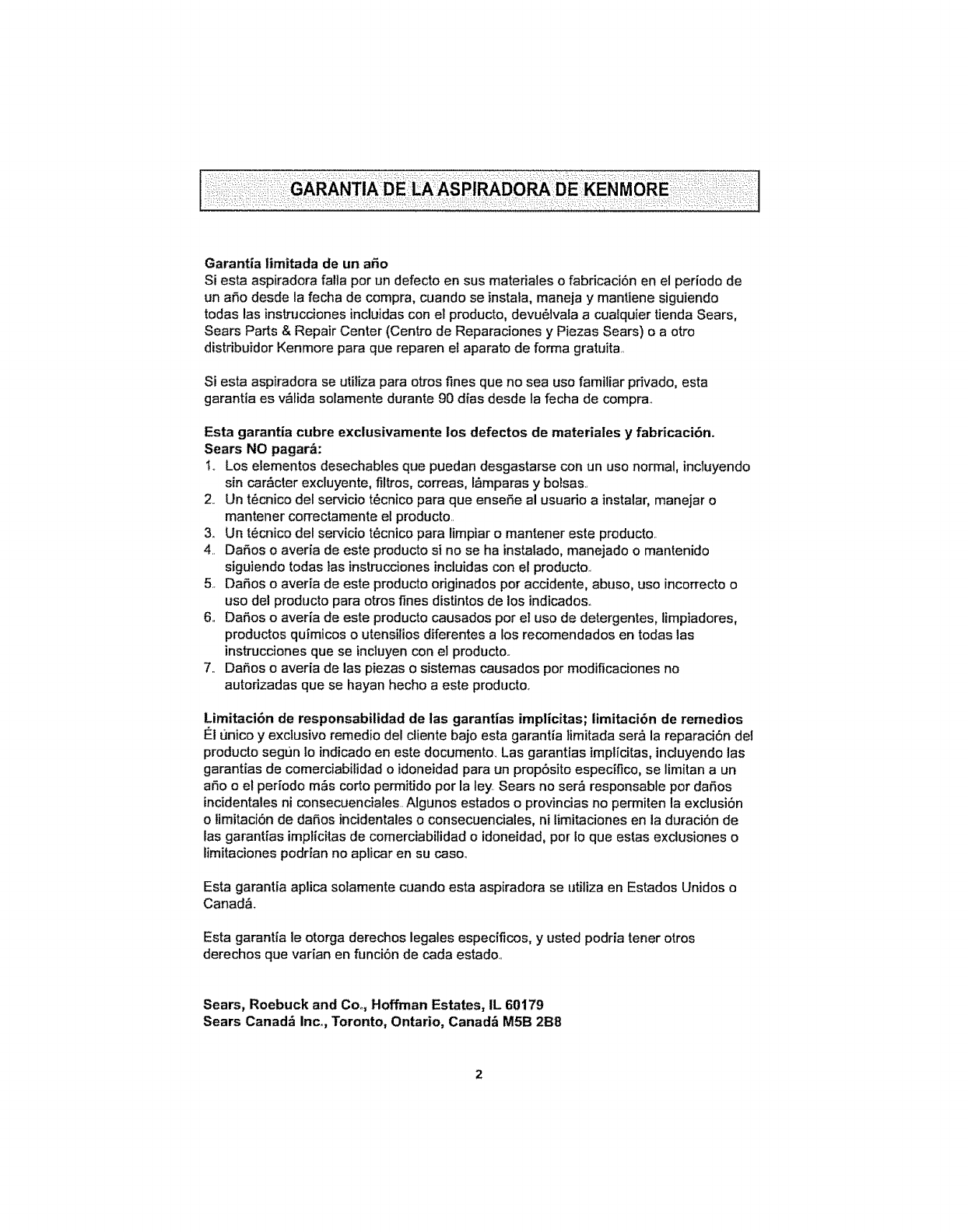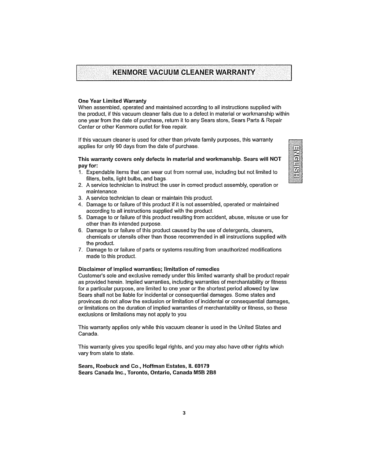 Kenmore Vacuum Cleaner Warranty , 3