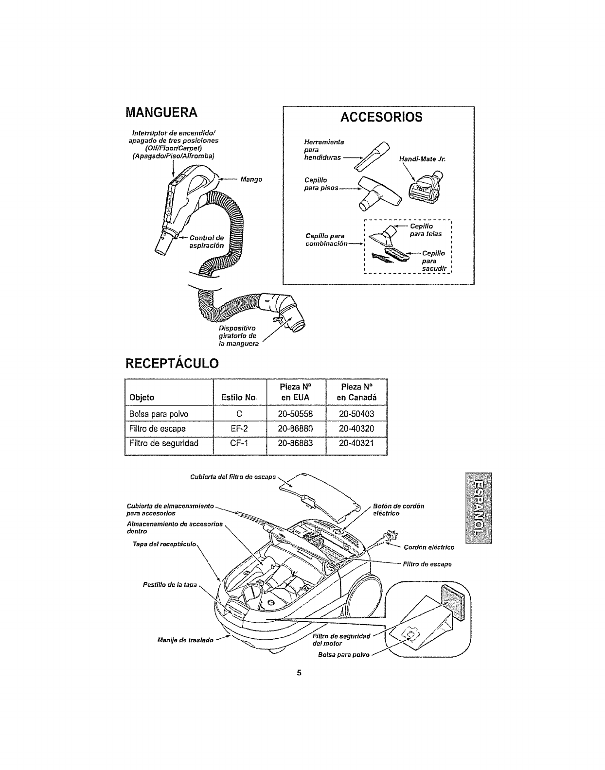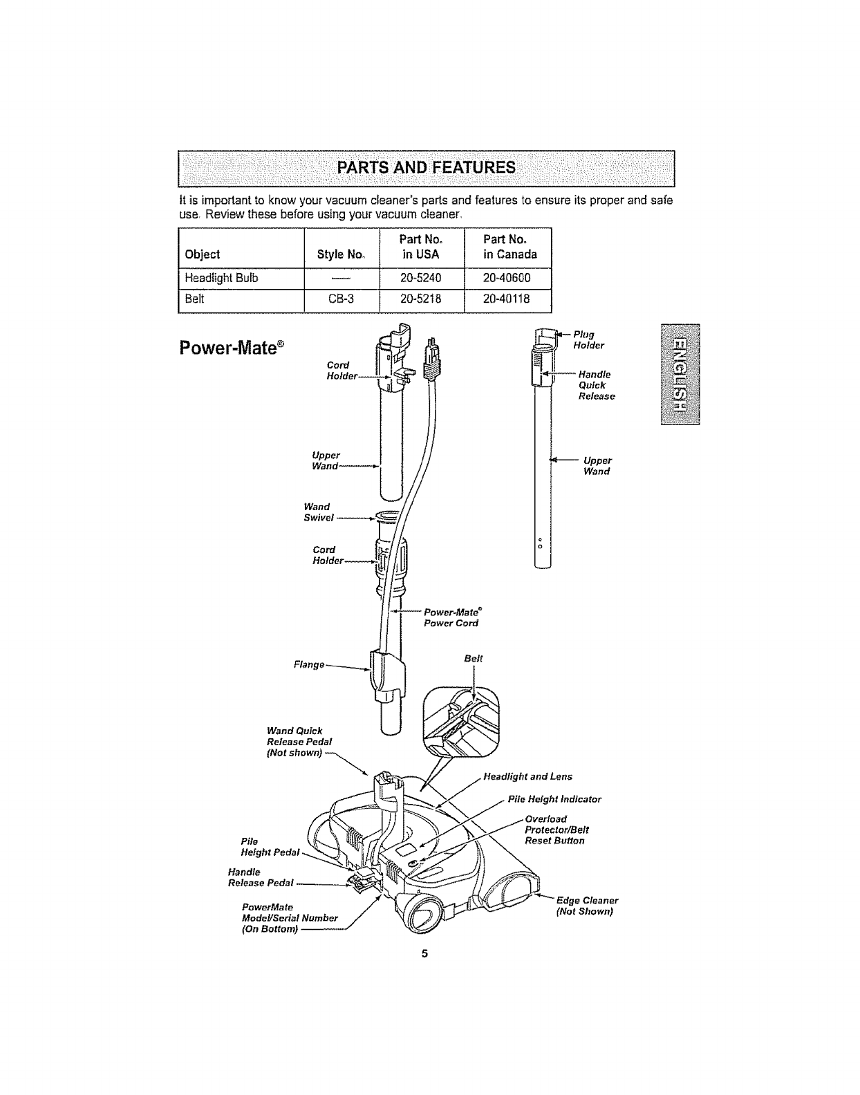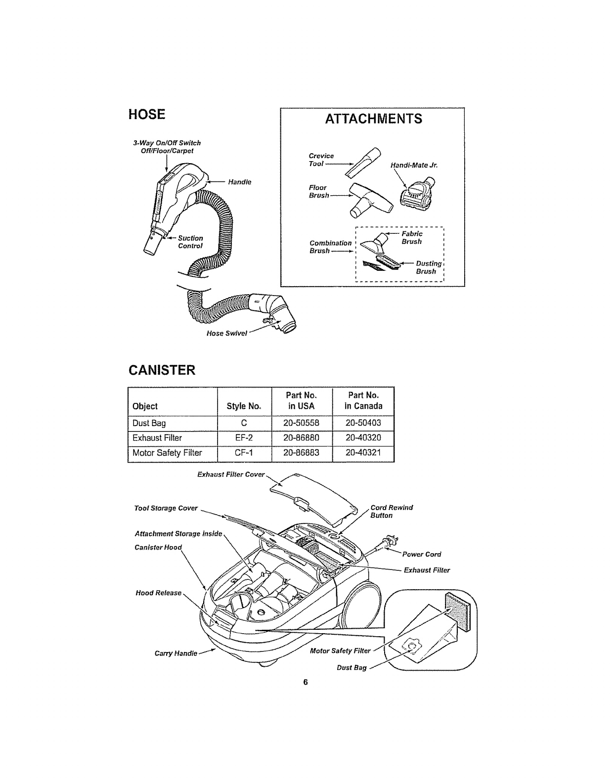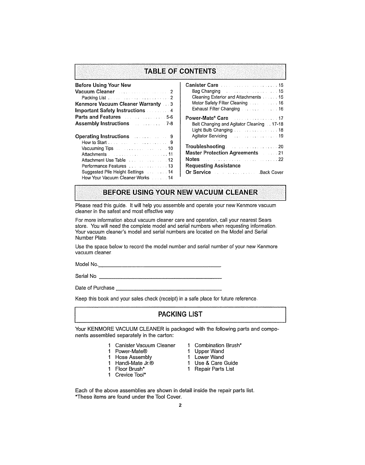 Your KENMORE VACUUM CLEANER is packaged with the following parts and compo-