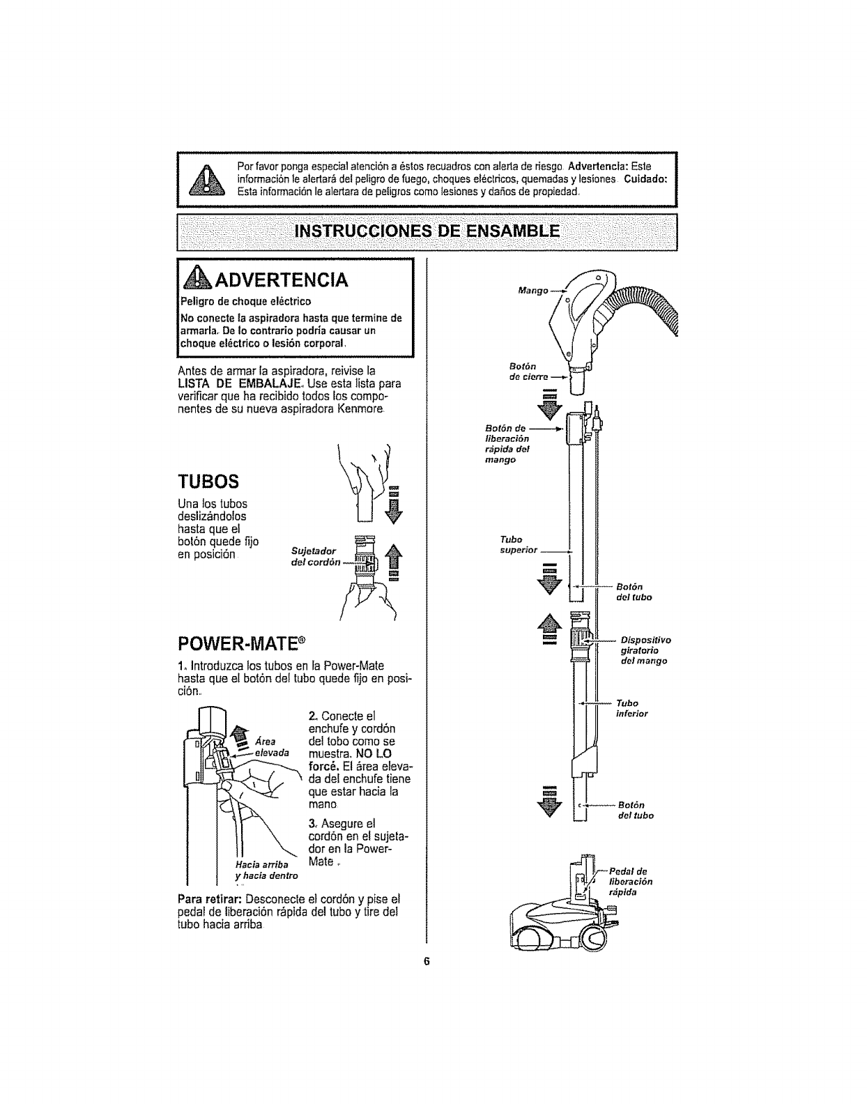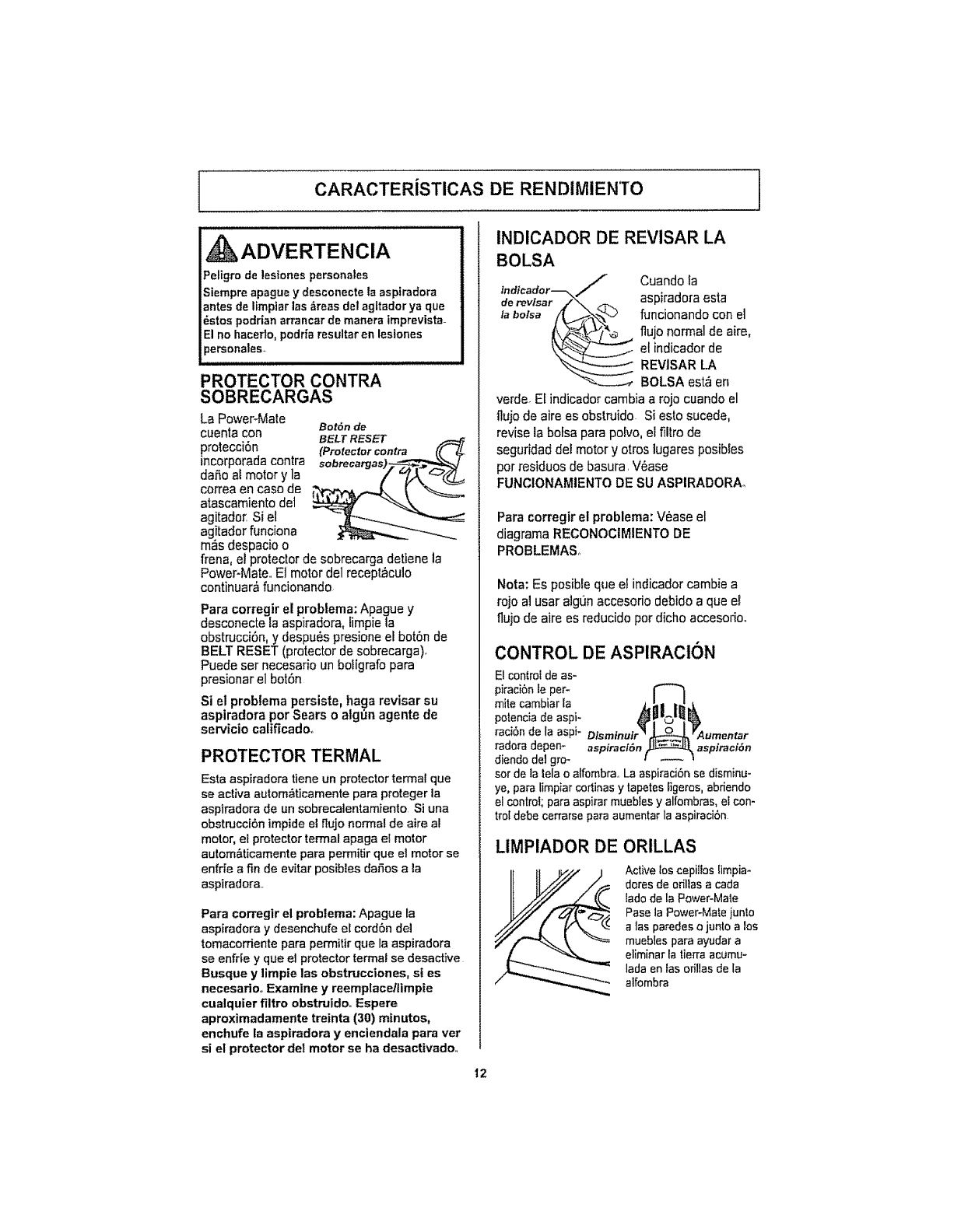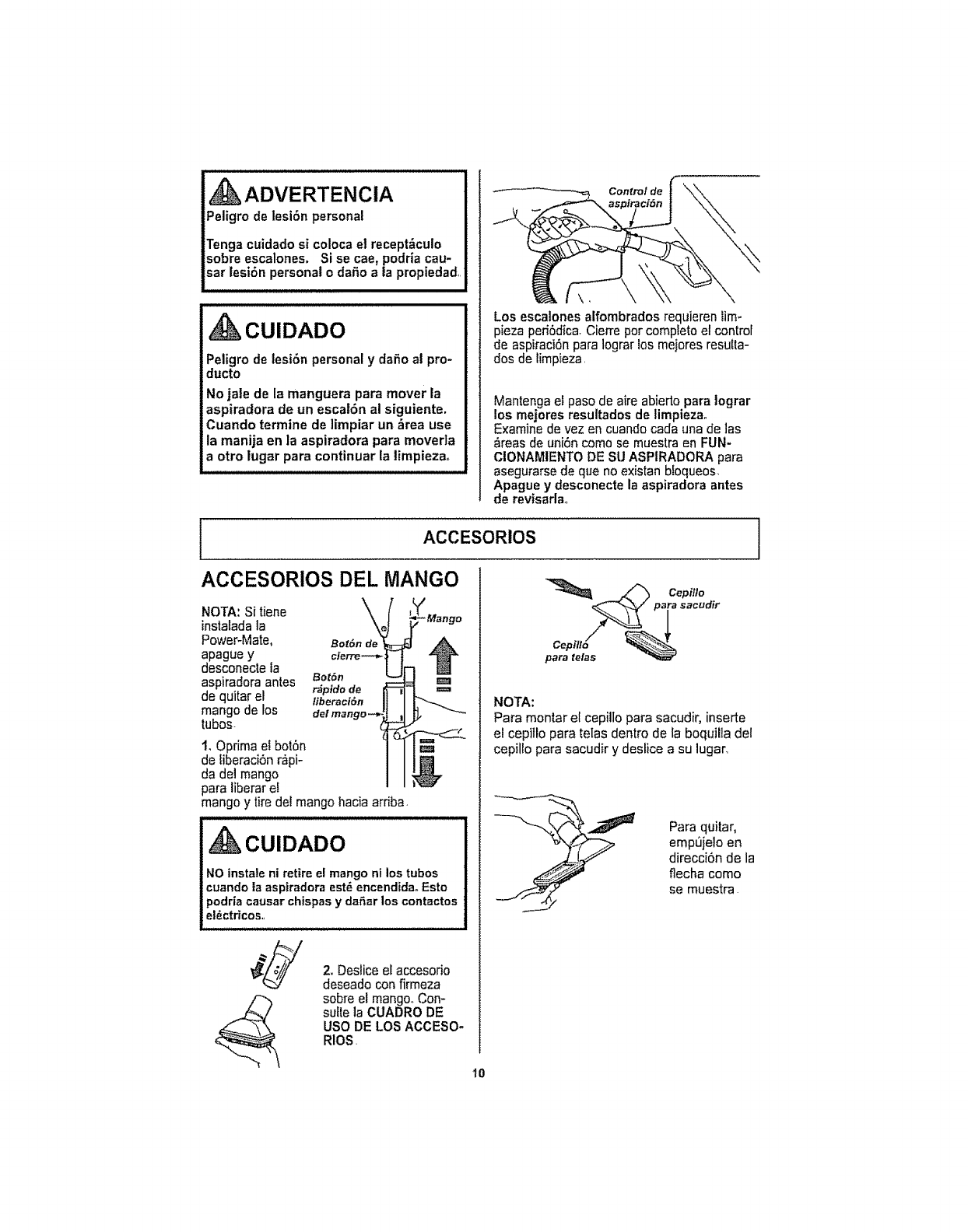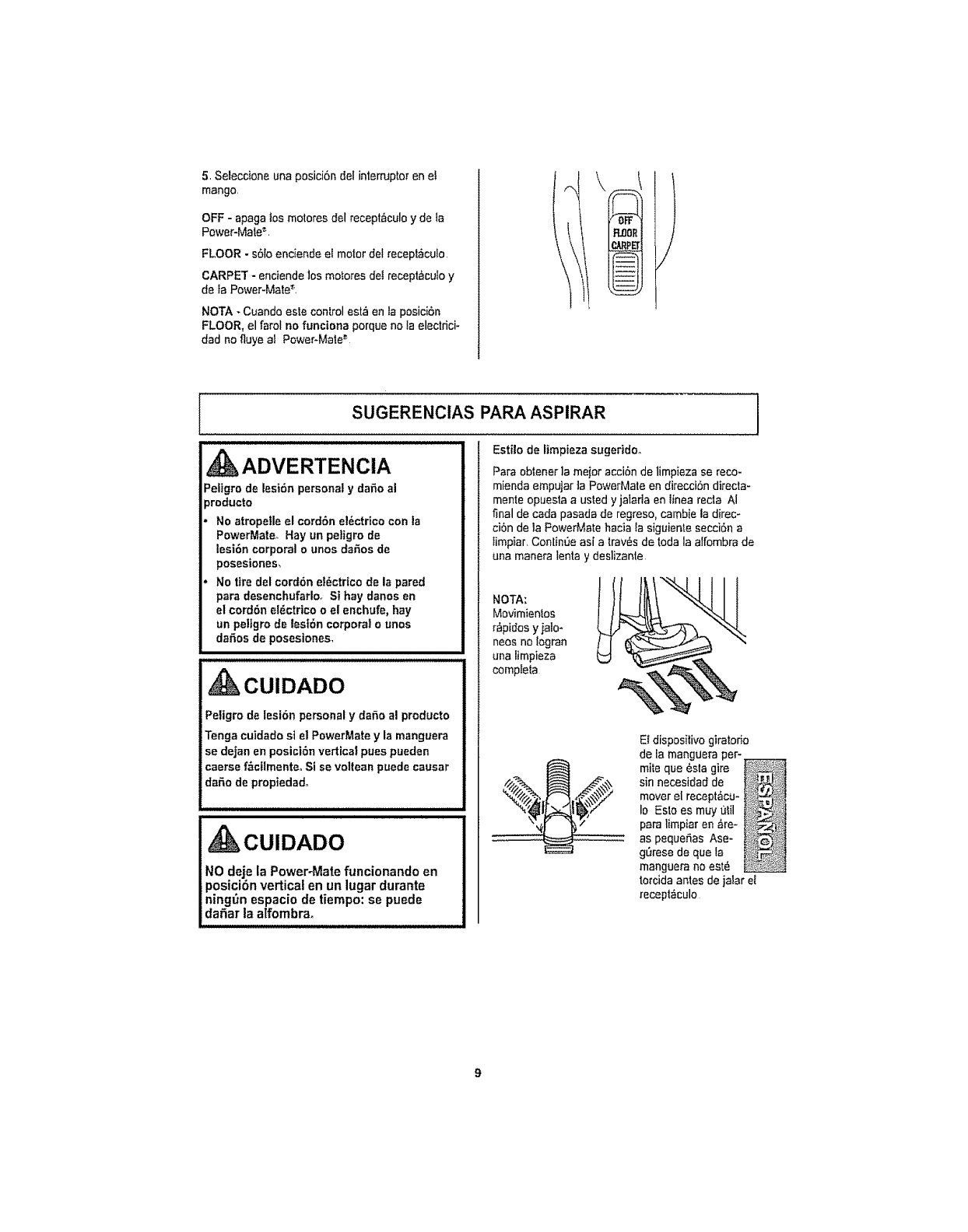 esdiIlcllempujarlaPower-Mate,( 2. _piraci6n demasiac)opolene. 2. kbrael controlde aspirac)6n.