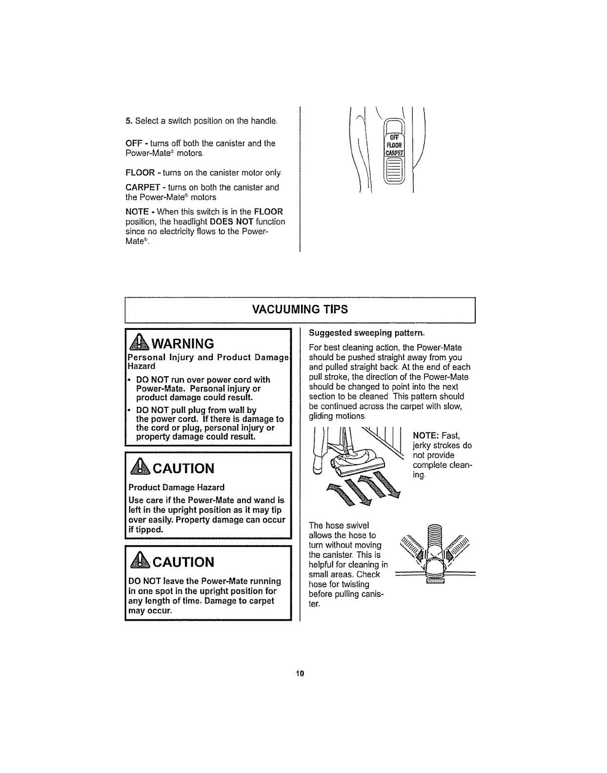 Vacuuming Tips ................... 10