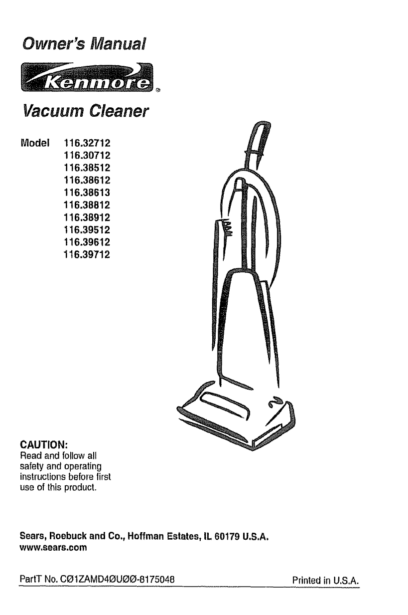 User Manual: Kenmore 11630712000 11630712000 KENMORE VACUUM CLEANER - Manuals and Guides View the owners manual for your KENMORE VACUUM CLEANER #11630712000. Home:Vacuums & Floor Care Parts:Kenmore Parts:Kenmore VACUUM CLEANER Manual