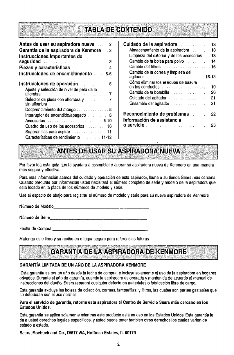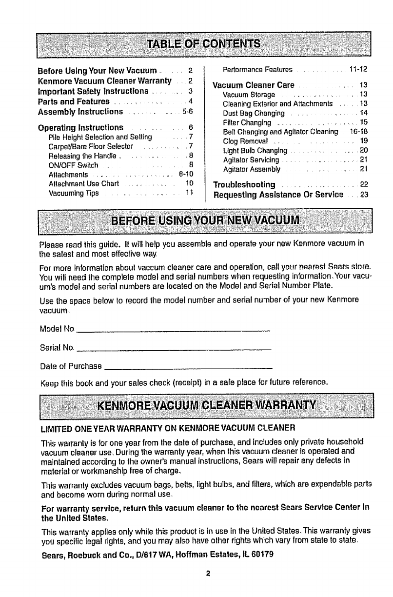 Kenmore 11630712000 1008899L User Manual VACUUM CLEANER Manuals And Guides