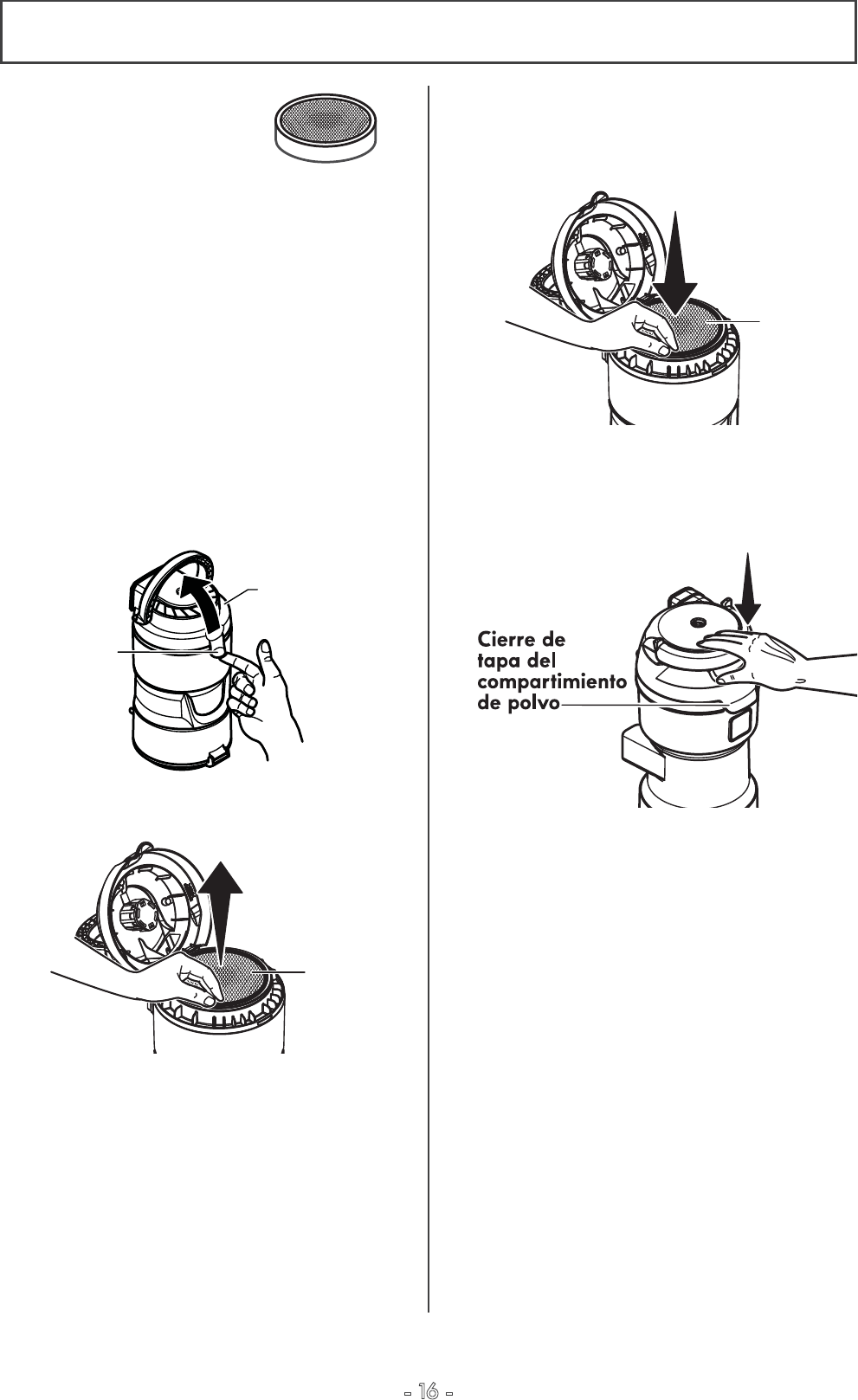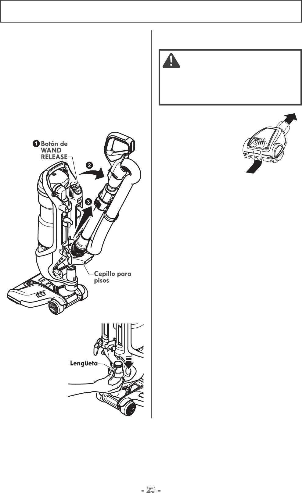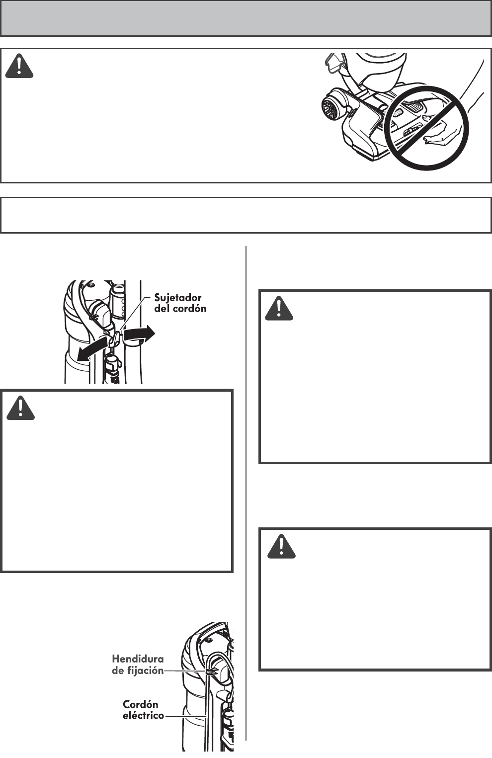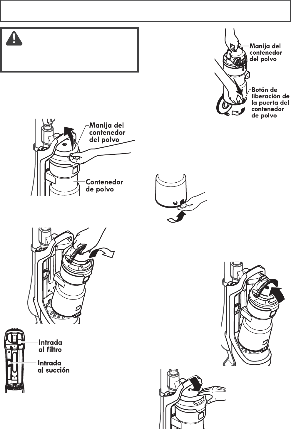 Des co necte la aspi ra dora antes de efectuar el mantenimiento a su aspiradora. De