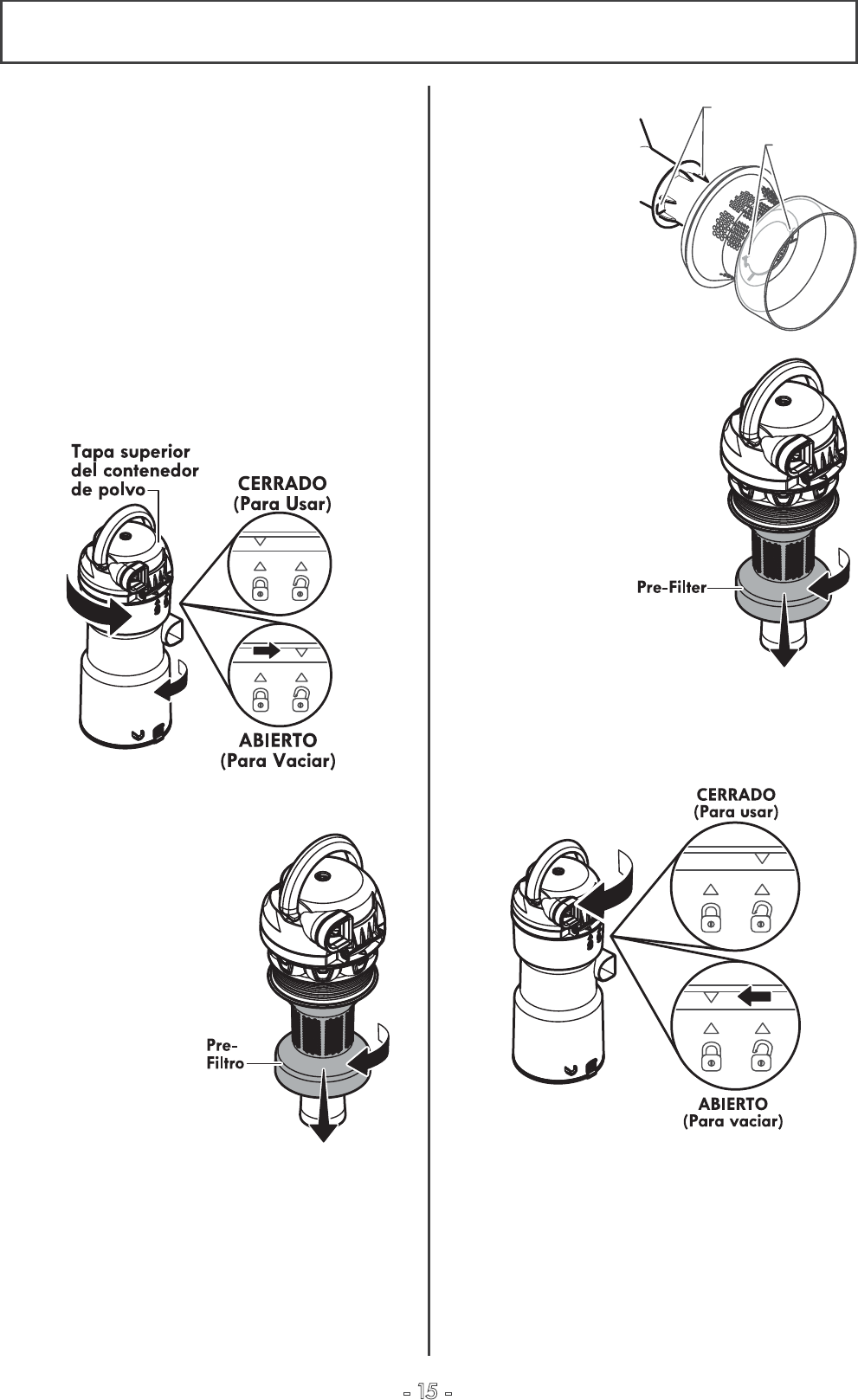 9. Filtros de seguridad. 9. Limpie el prro (pág 15),
