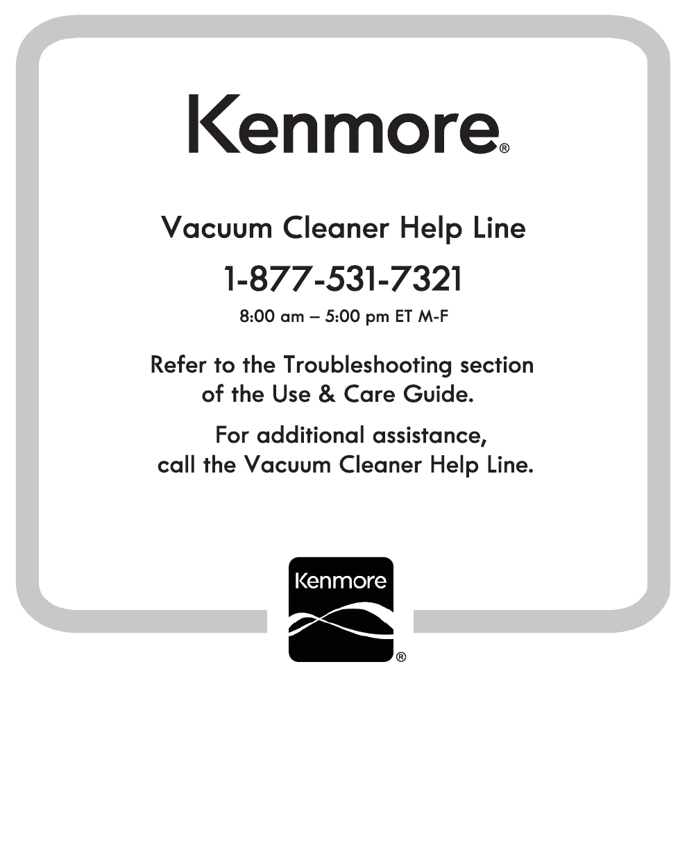 For more information about vacuum cleaner care and operation, call the Vacuum Cleaner