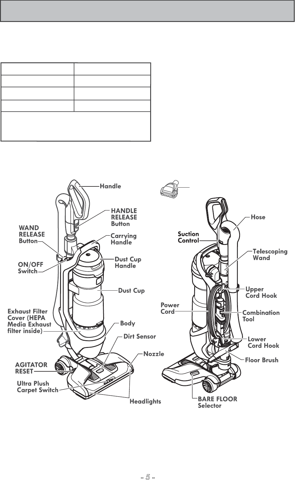 Your KENMORE ELITE VACUUM CLEANER is packaged with the following parts and