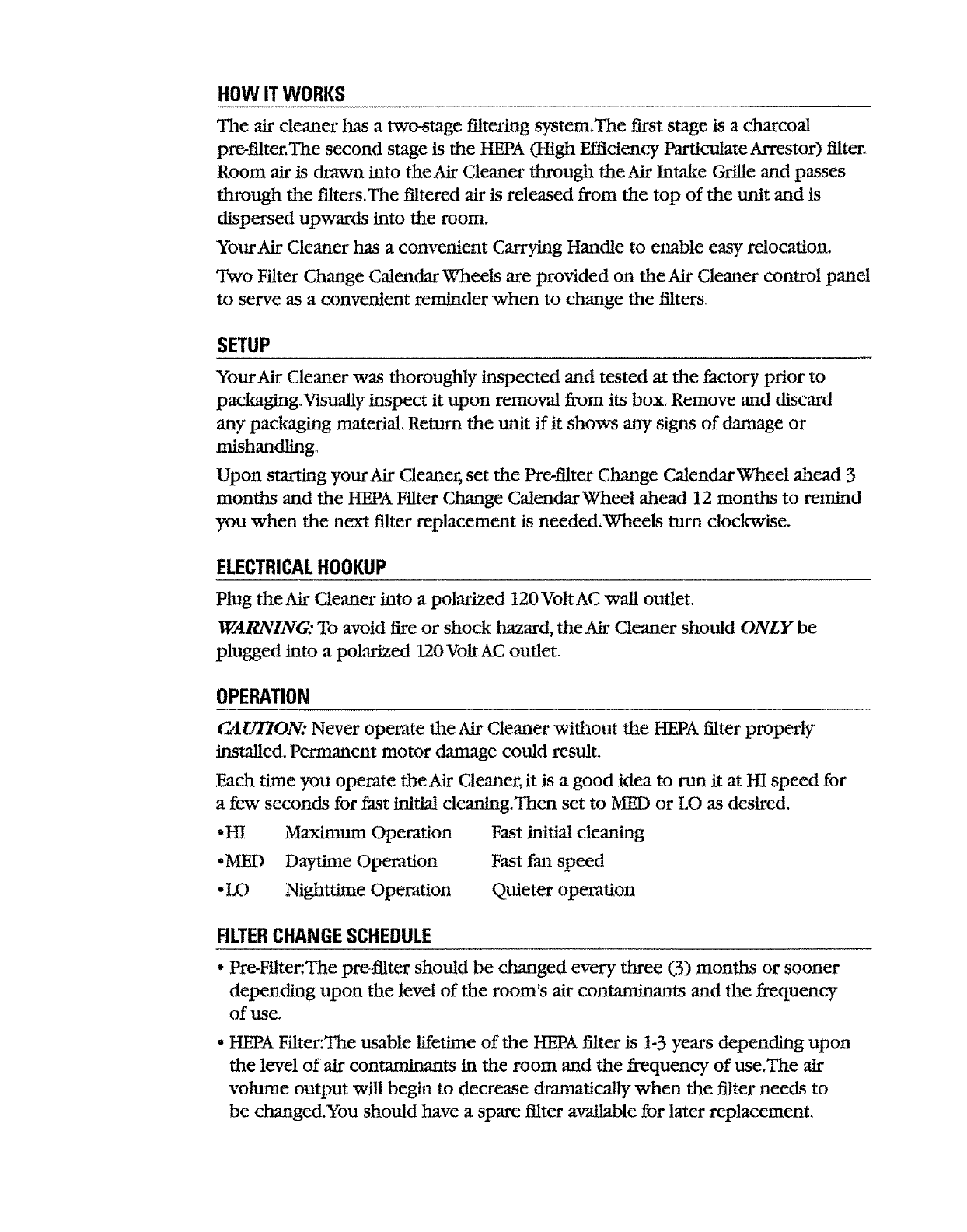 Each time you operate the Air Cleaner, it is a good idea to run it at HI speed for