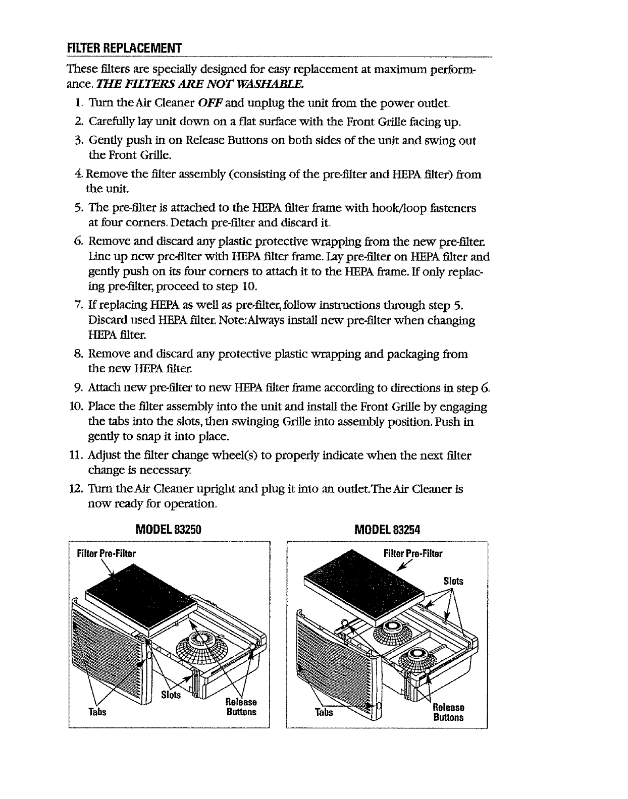 Kenmore 15283250 User Manual AIR CLEANER Manuals And Guides L0801124
