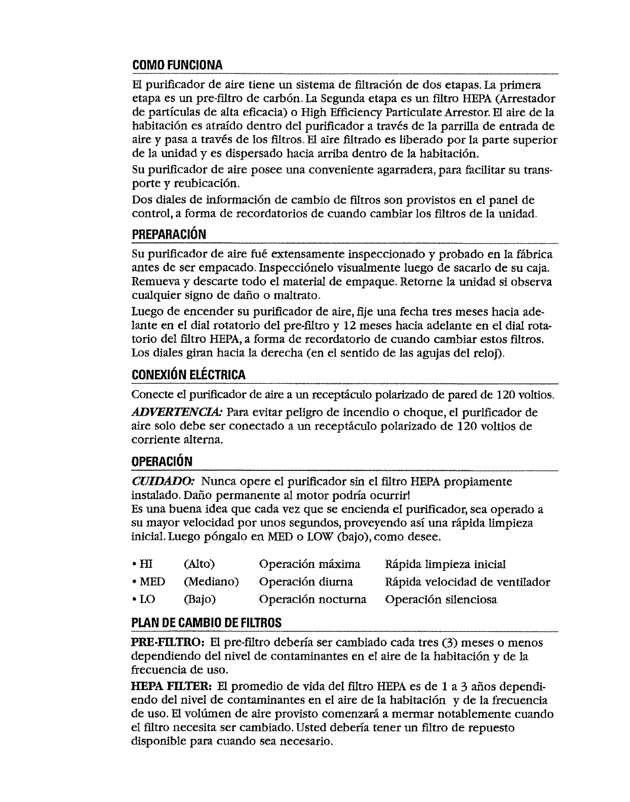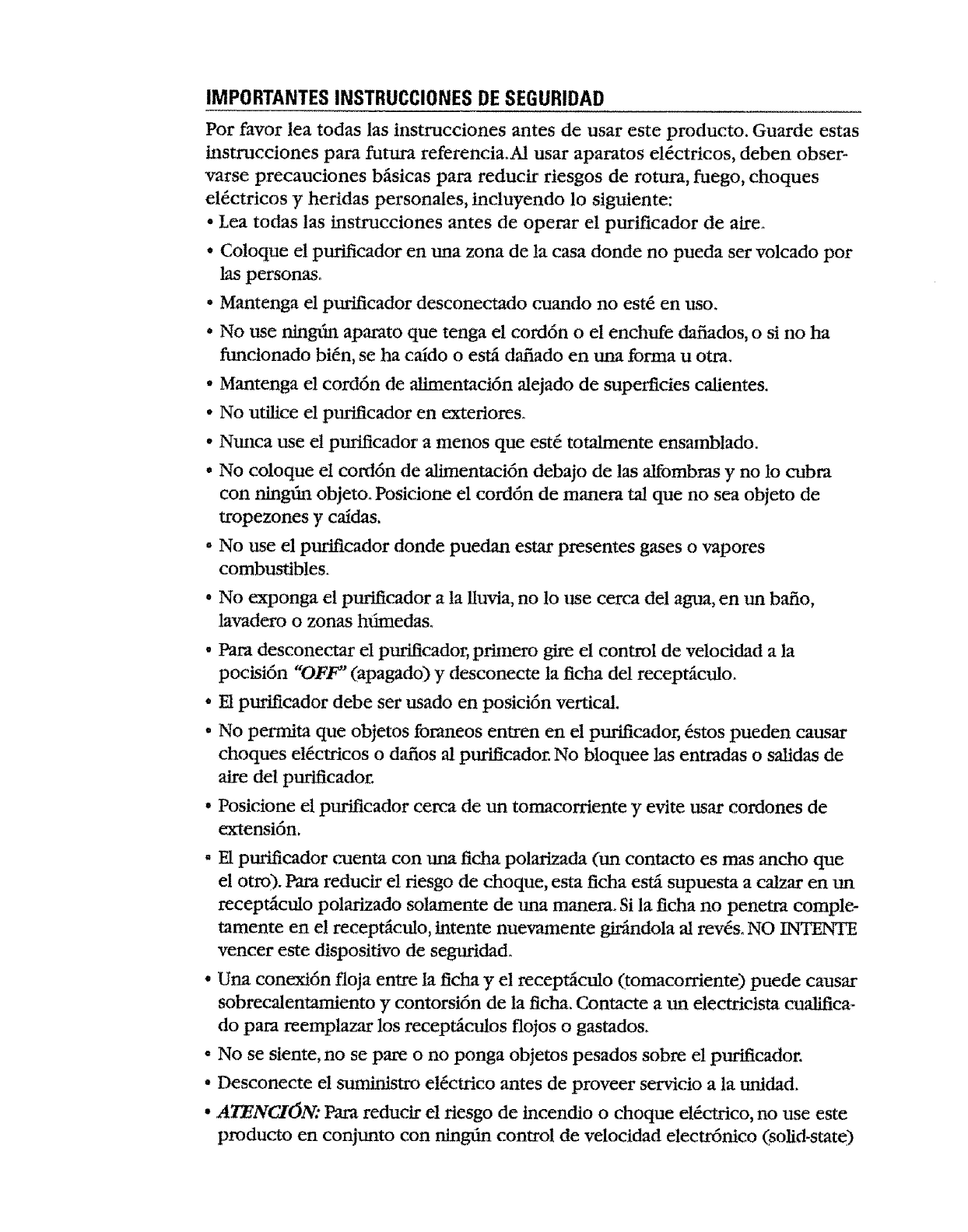 1. Apague d purificador de aire ydescon6ctelo del recept_culo tomacorriente.