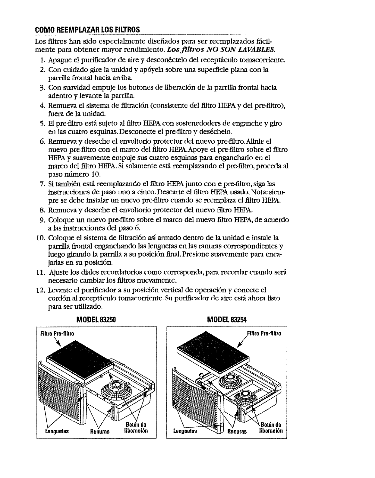 HEPA ysuavemente empuje sus cuatro esqtfinas para engancharlo en el