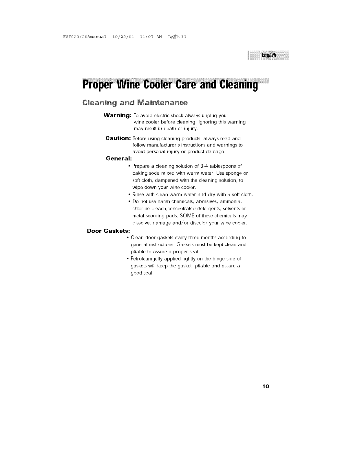 Cleaning and Maintenance ................................................................. .10
