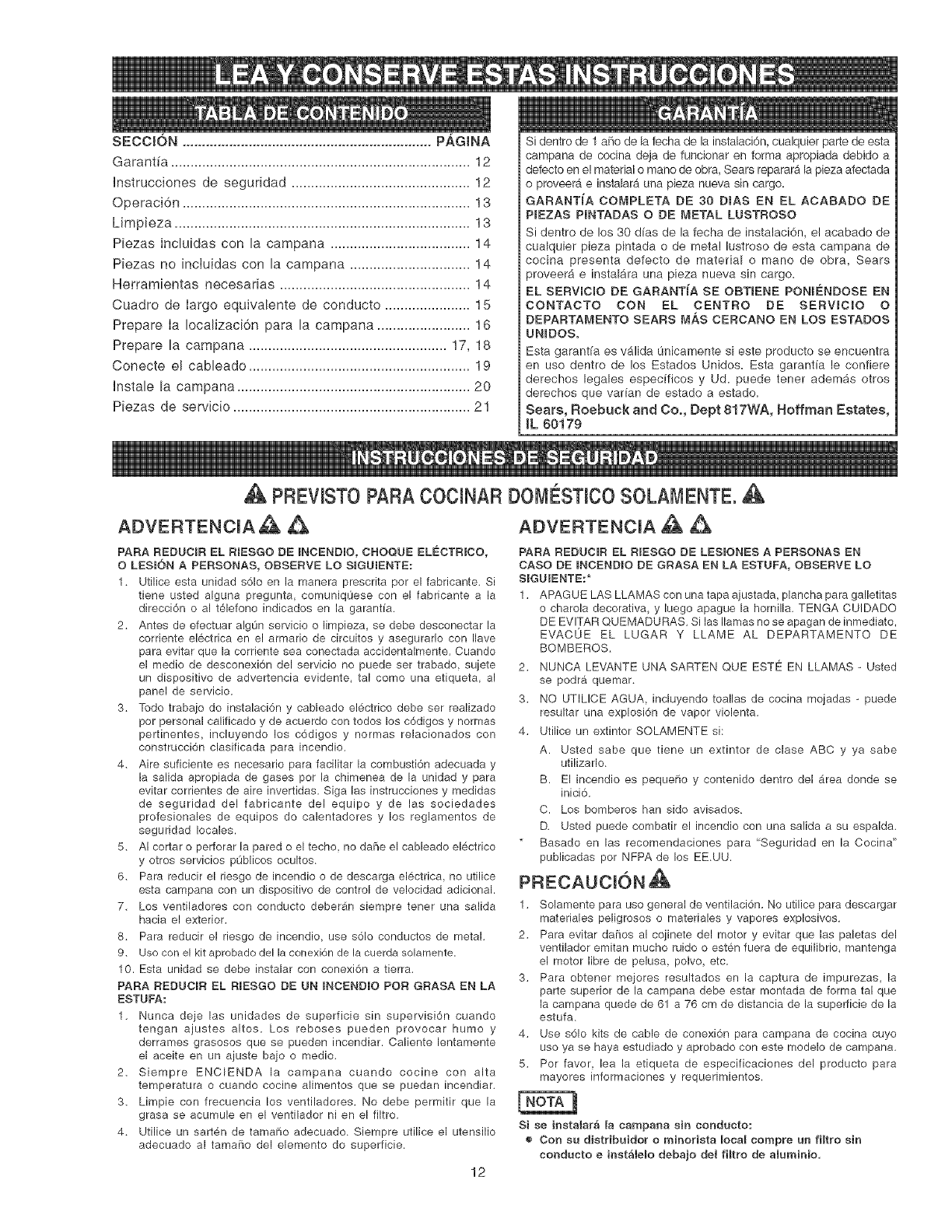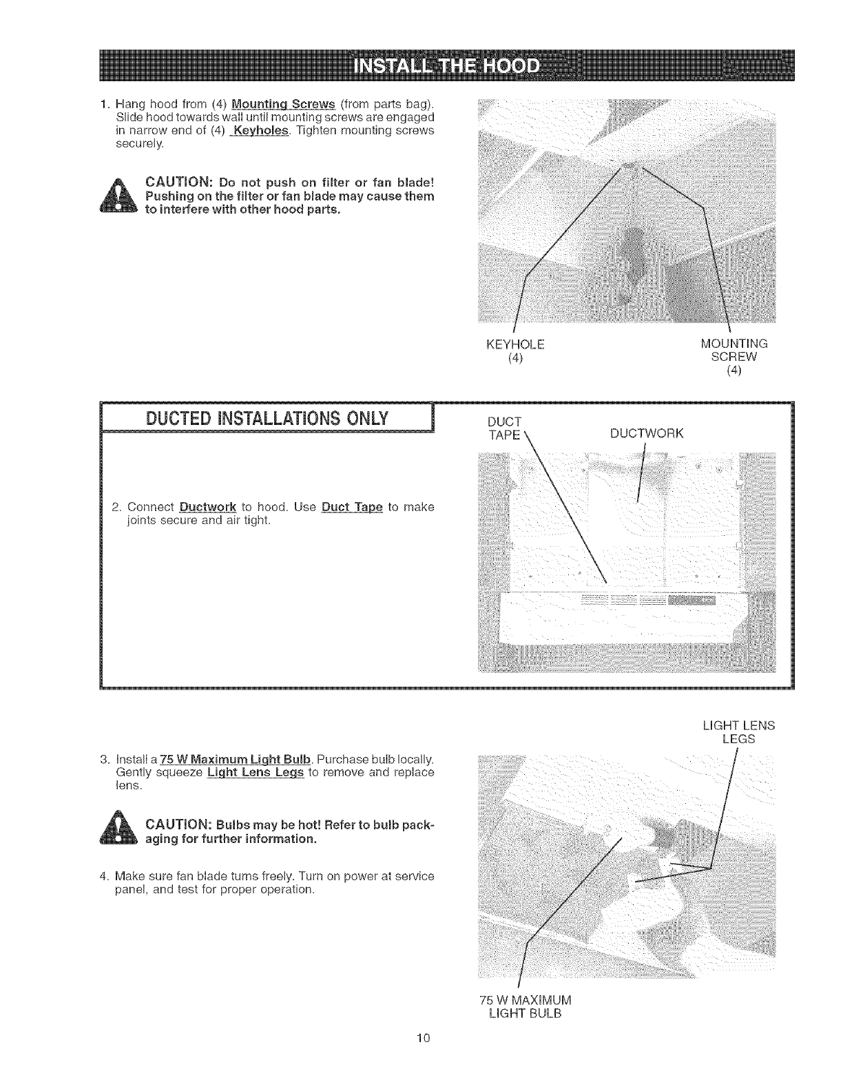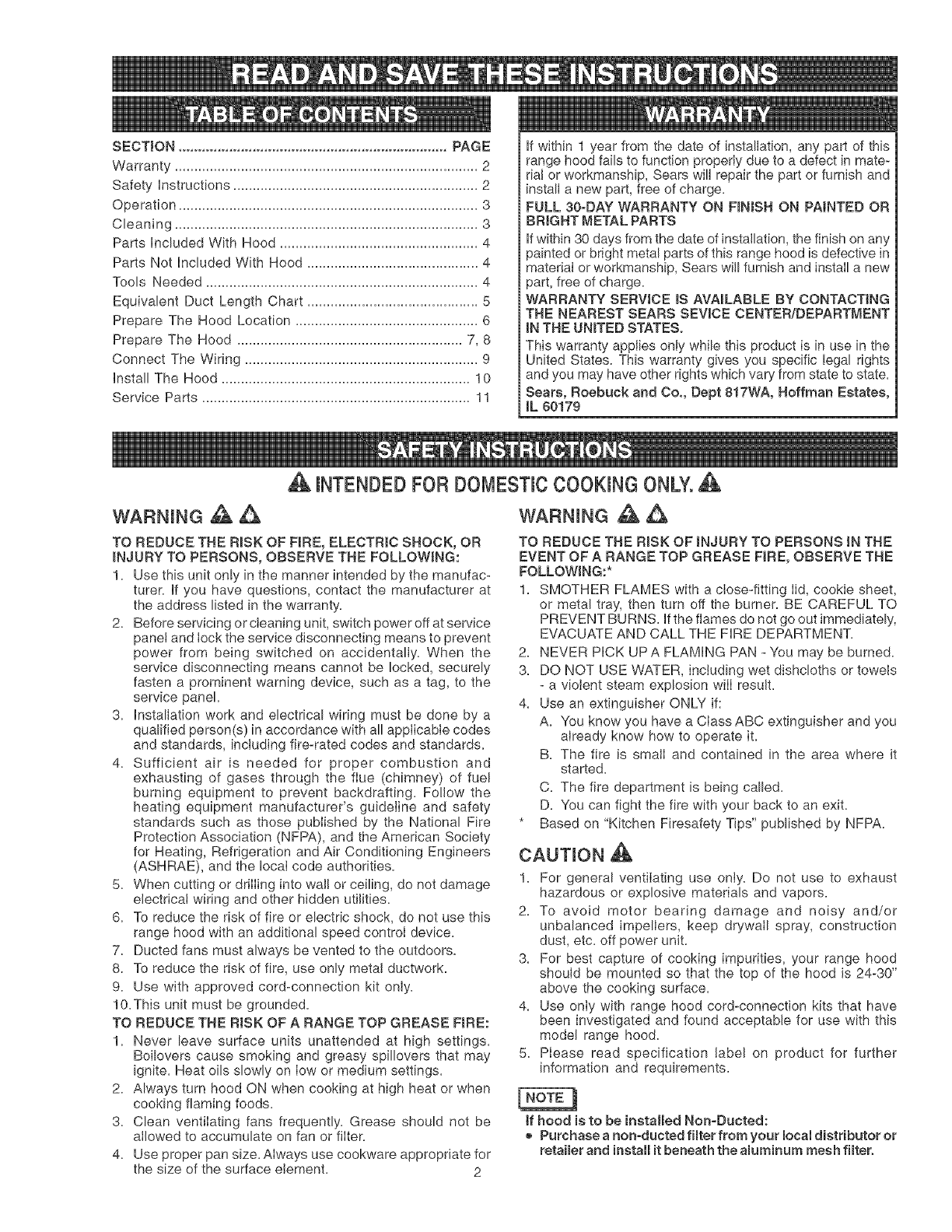 KENMORE Range Hood Manual L0504529 KENMORE Range Hood Owner's Manual, KENMORE Range Hood installation guides