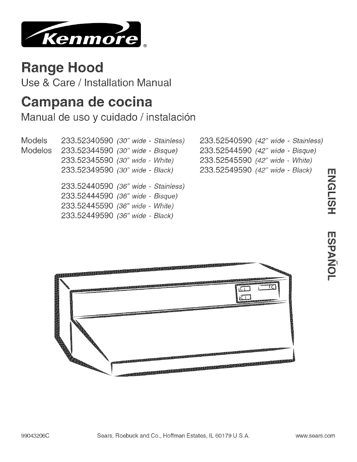 Kenmore 23352440590 User Manual RANGE HOOD Manuals And Guides L0504542
