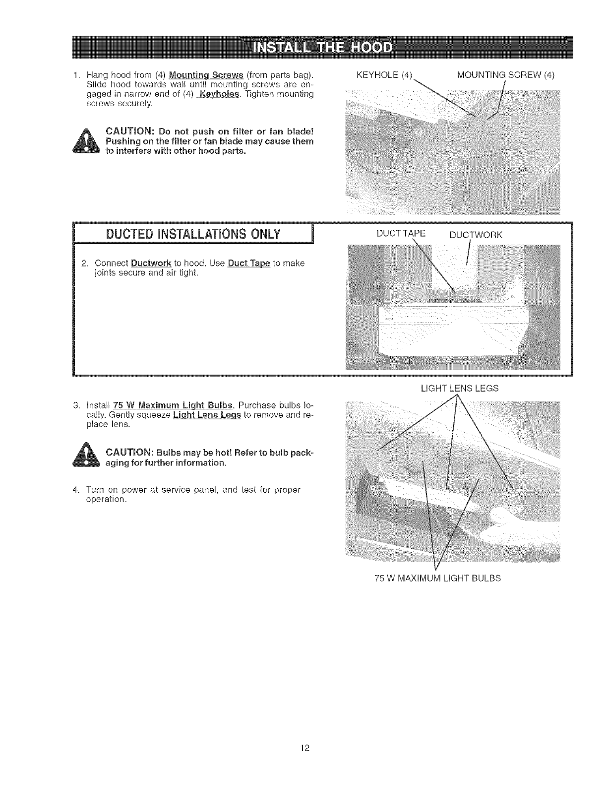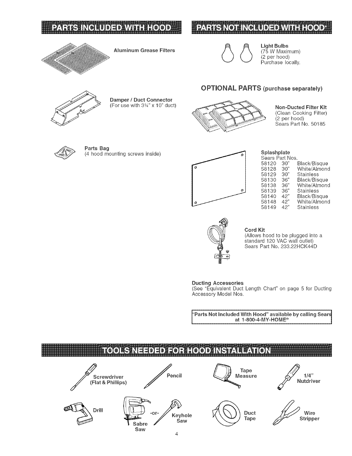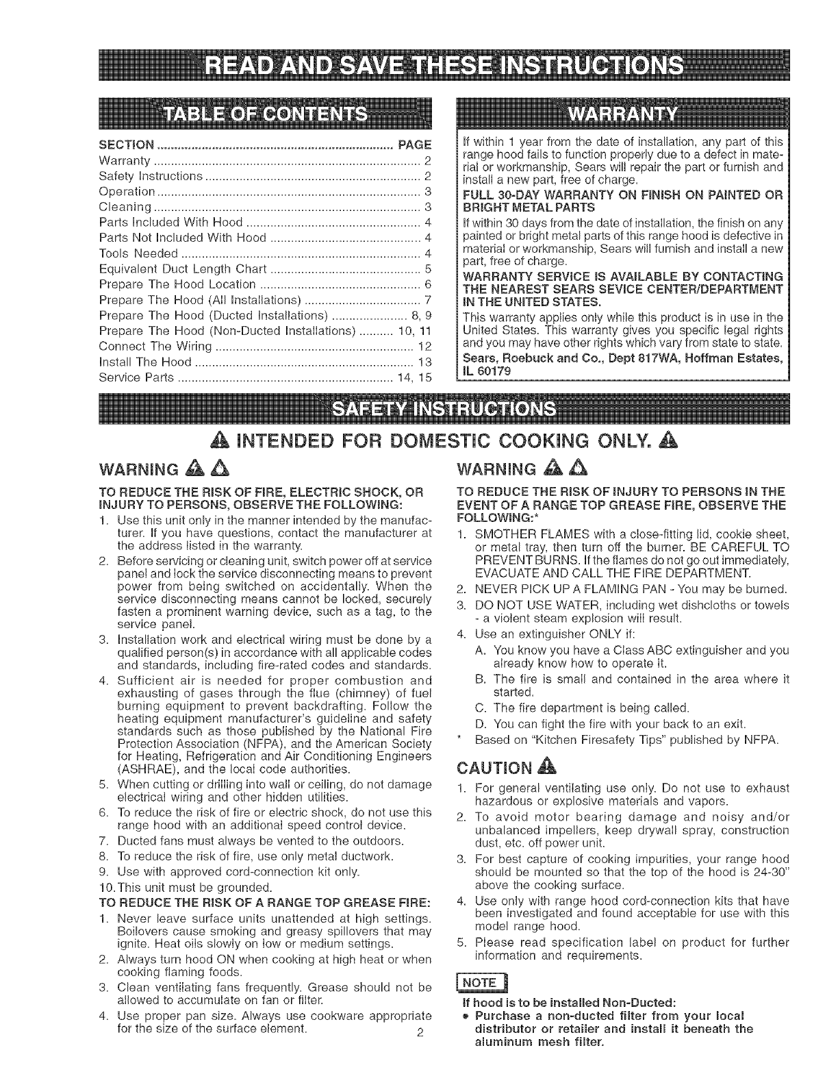 KENMORE Range Hood Manual L0504542 KENMORE Range Hood Owner's Manual, KENMORE Range Hood installation guides
