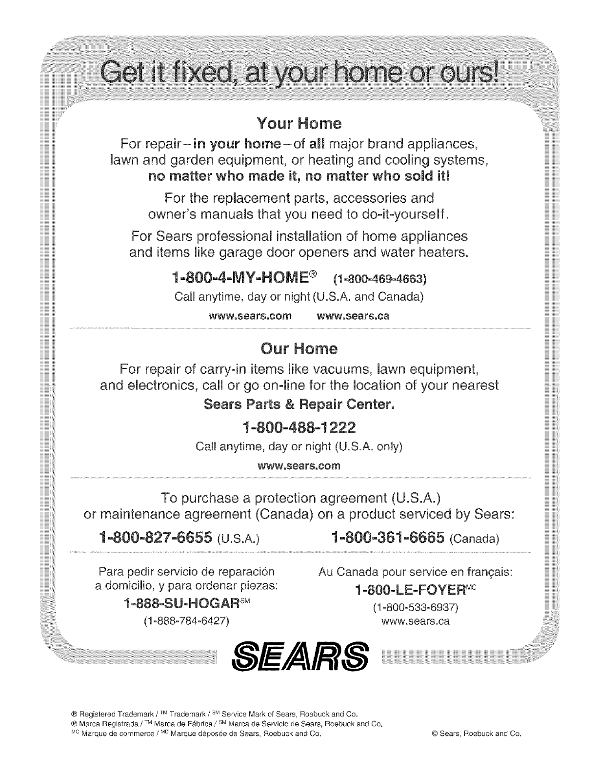 ® Registered Trademark /Trademark /Service Mark of Sears, Roebuck and Co.