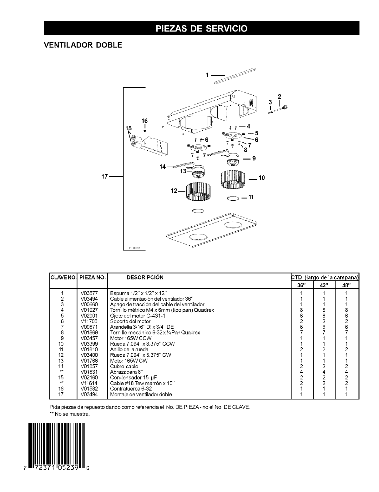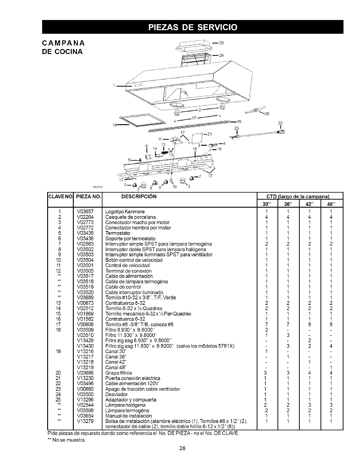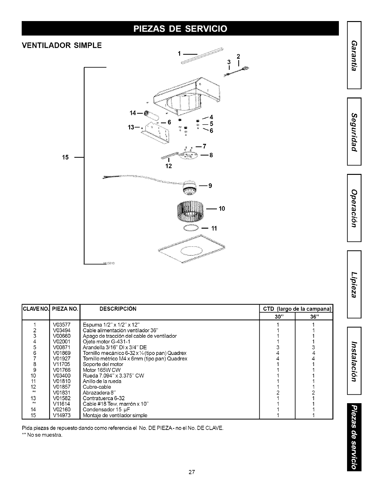 Pida piezas de repuesto dando como referencia el No. DE PIEZA- no el No. DE CLAVE.