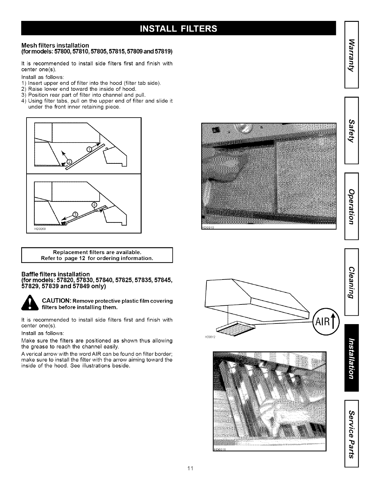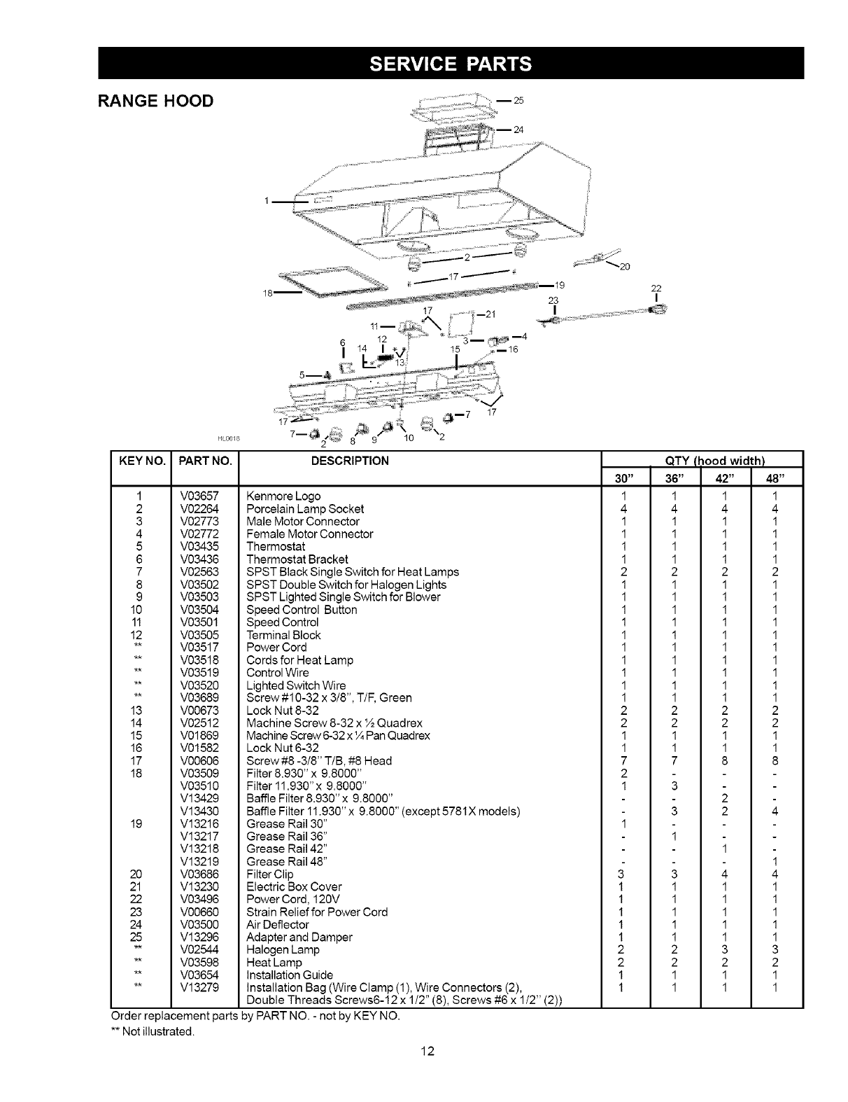 KENMORE Range Hood Manual L0504549 KENMORE Range Hood Owner's Manual, KENMORE Range Hood installation guides