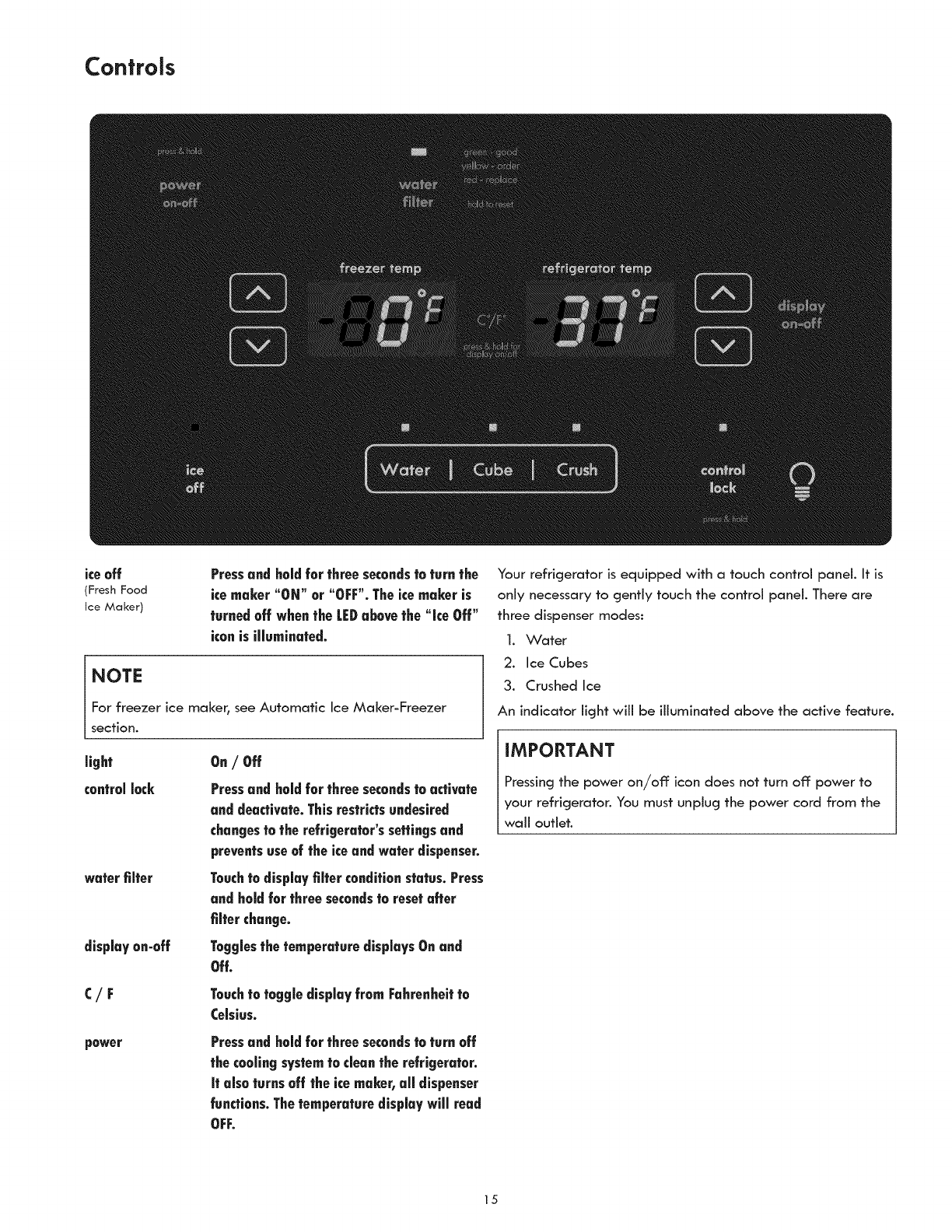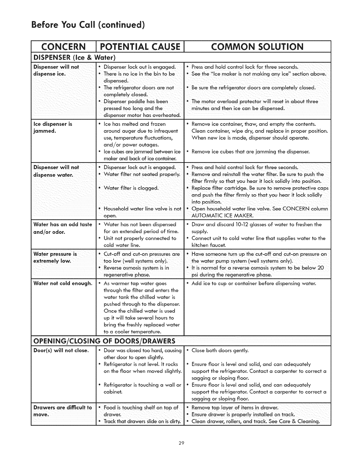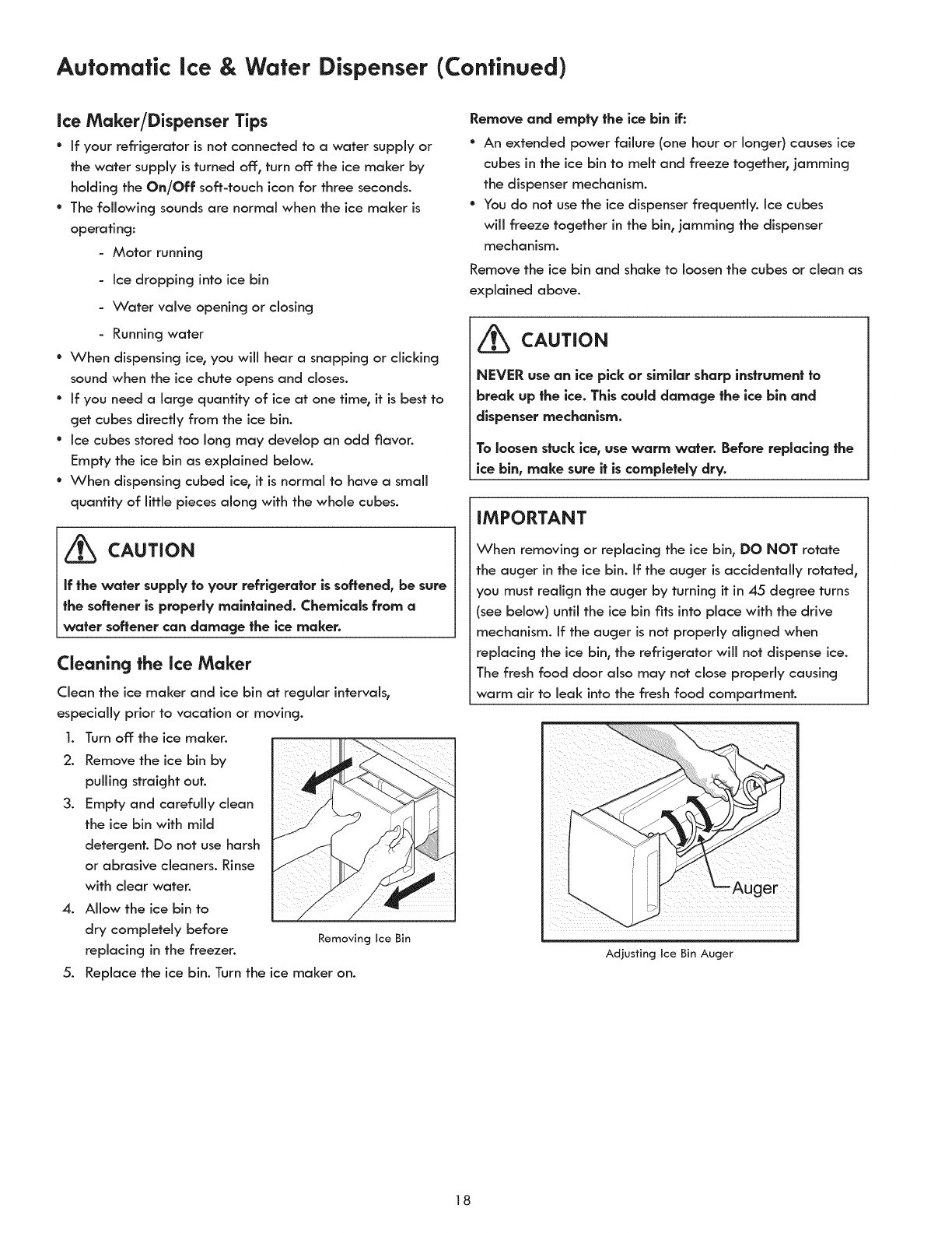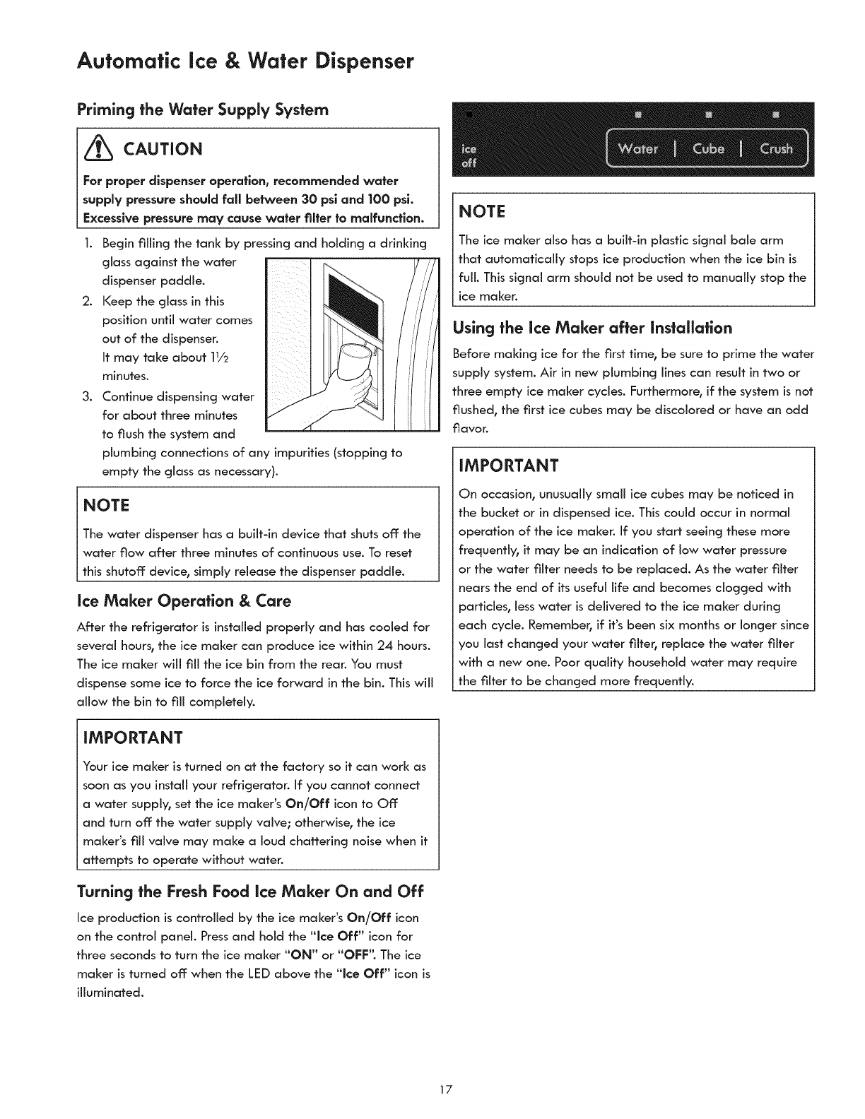 AutomaticIce& Water Dispenser............................ 17-18