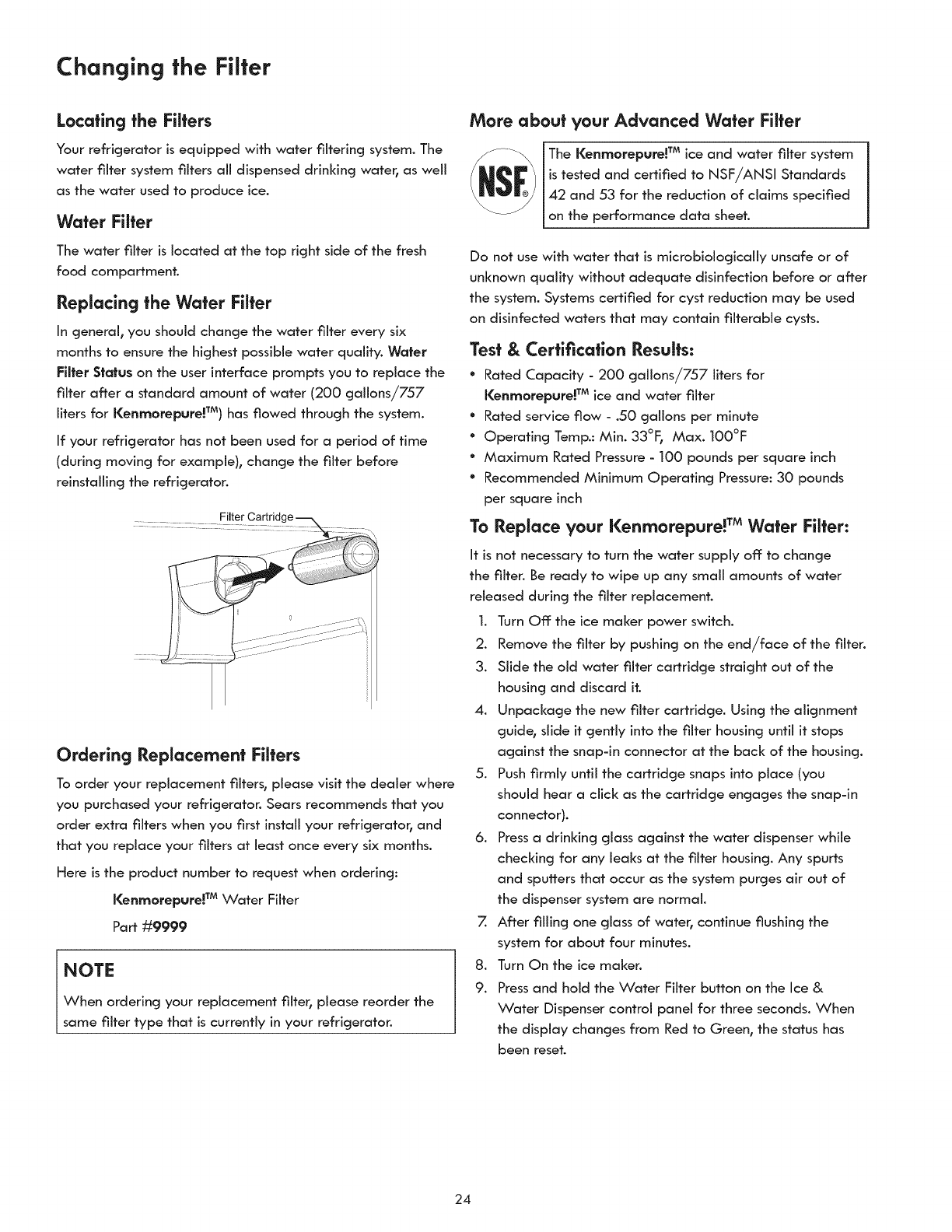 Changingthe Filter..................................................... 24