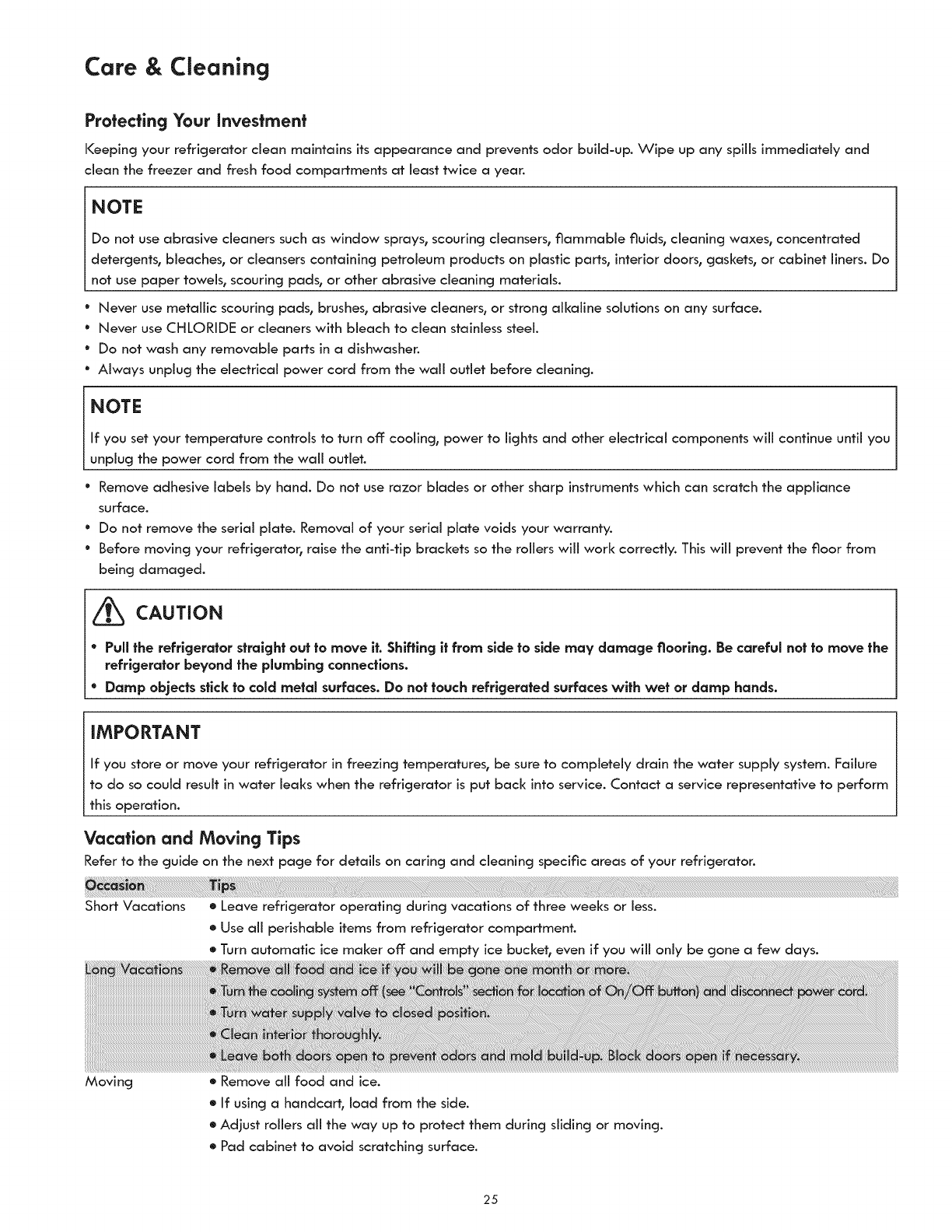 Care& Cleaning .................................................... 25-27