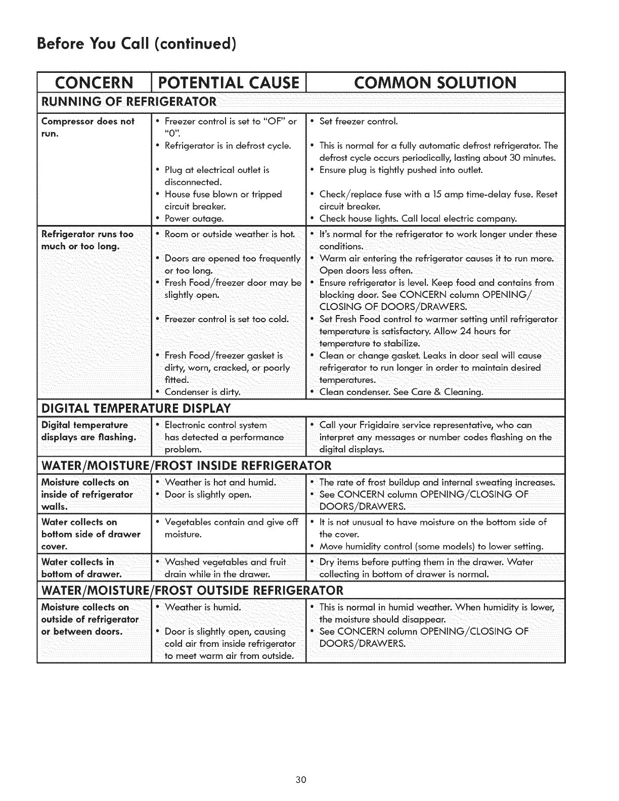 WATER/MOISTURE/FROST INSIDE REFRIGERATOR