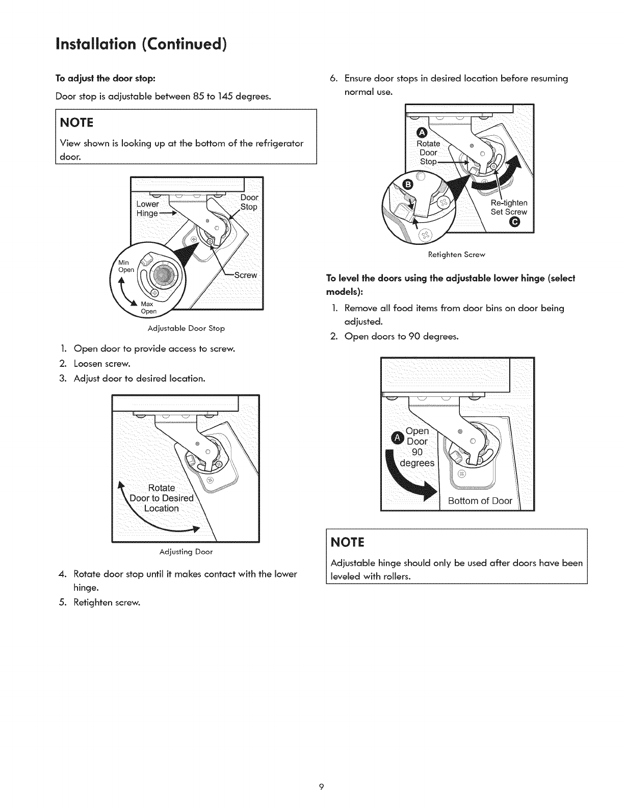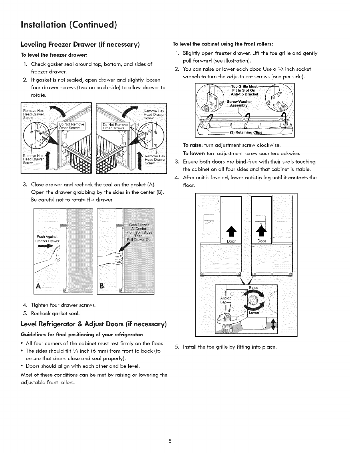 * Ensurerefrigerator is level. Keep food and contains from
