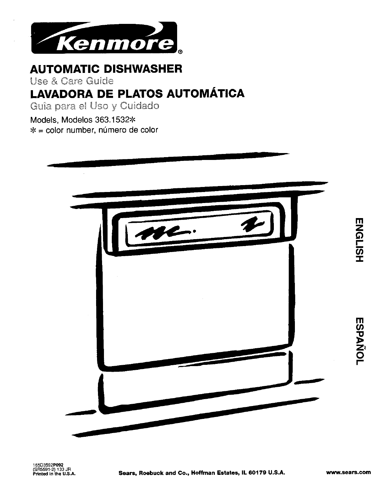 Kenmore 36315322100 User Manual DISHWASHER Manuals And Guides L0504334