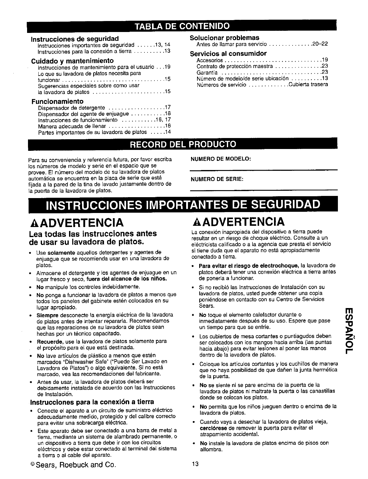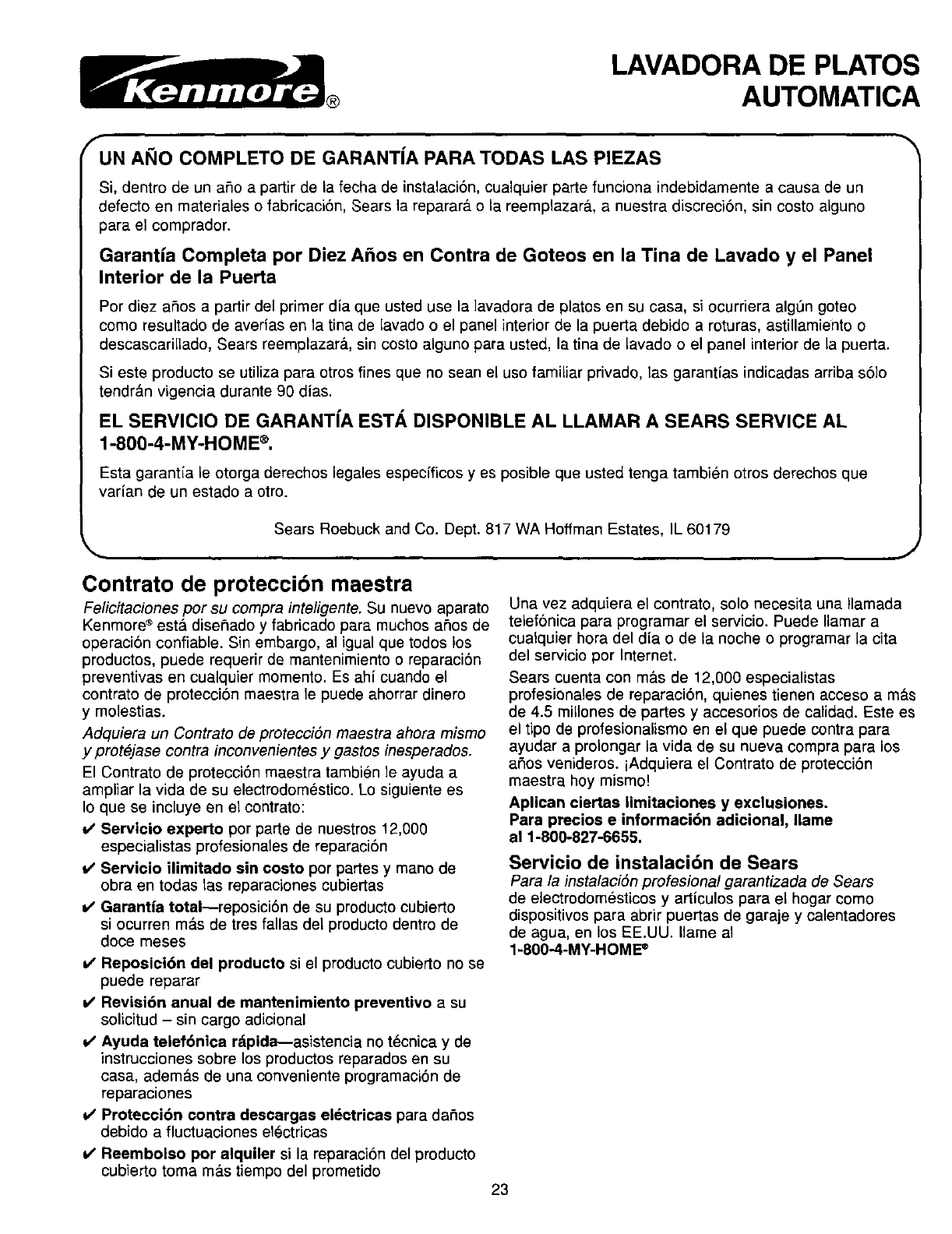 EL SERVICIO DE GARANTfA EST._ DISPONIBLE AL LLAMAR A SEARS SERVICE AL
