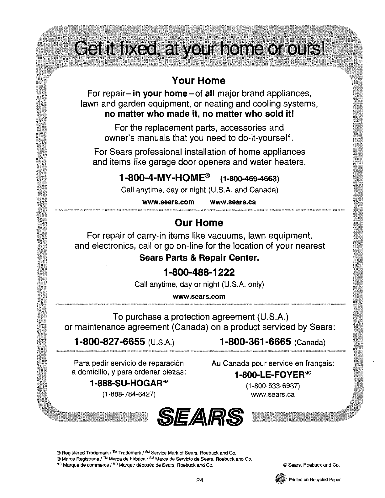 ® Registered Trademark /TMTrademark /SMService Mark of Sears, Roebuck and Co.