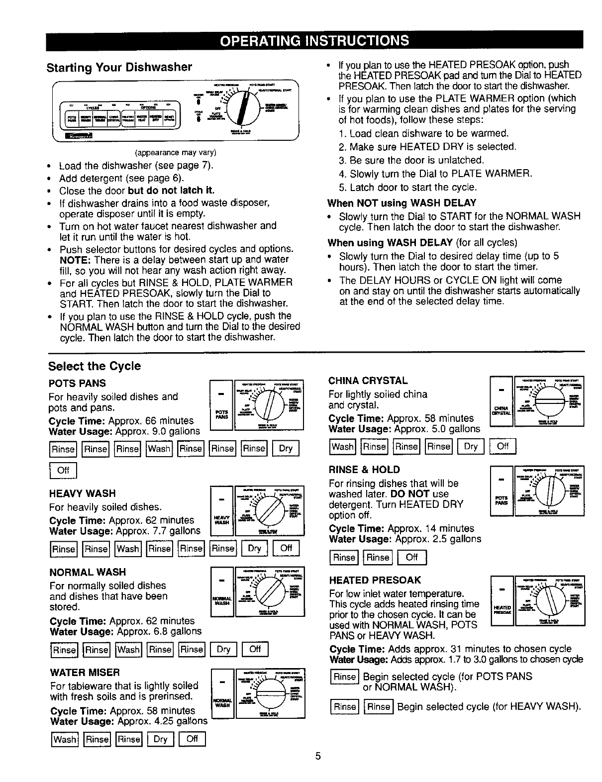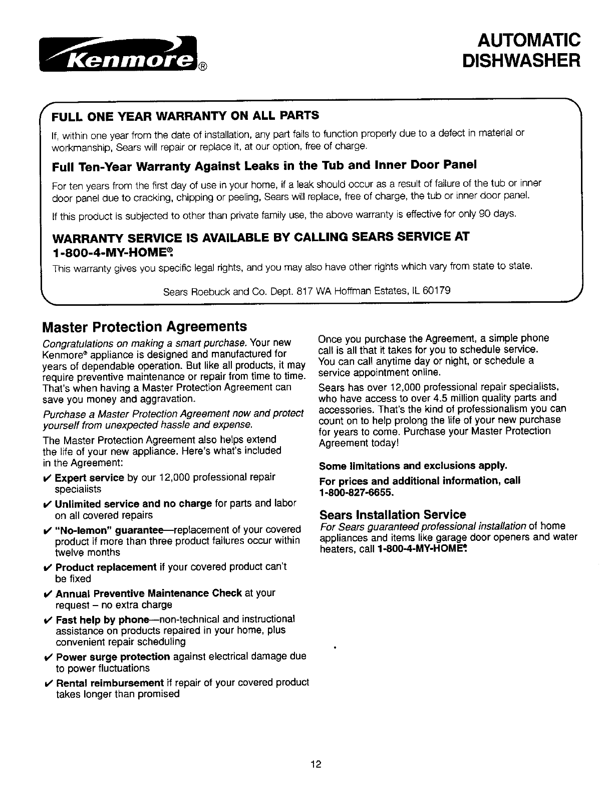 KENMORE Dishwasher Manual L0504334 KENMORE Dishwasher Owner's Manual, KENMORE Dishwasher installation guides