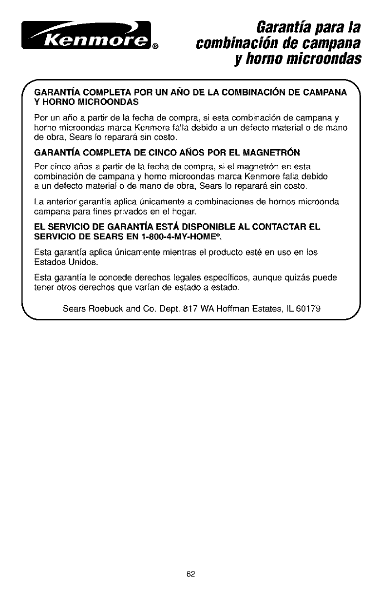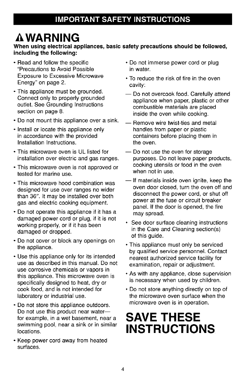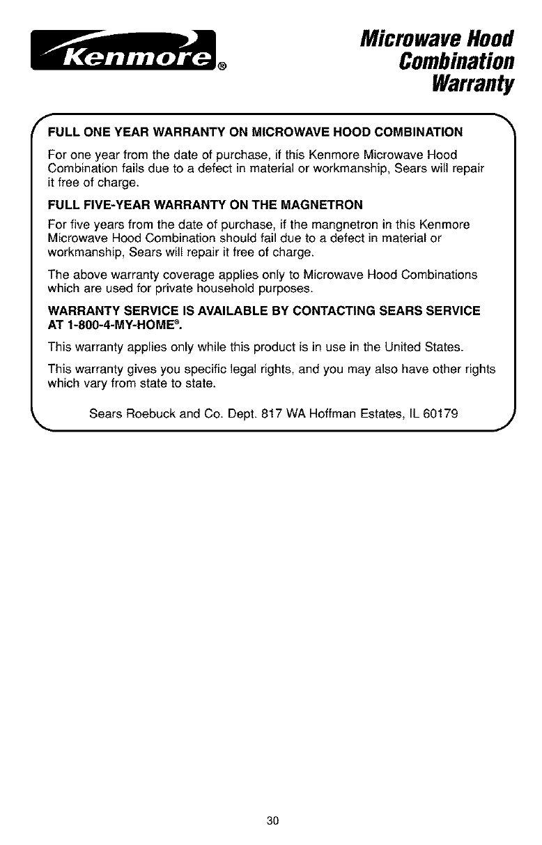 KENMORE Microwave/Hood Combo Manual L0306365 KENMORE Microwave/Hood Combo Owner's Manual, KENMORE Microwave/Hood Combo installation guides