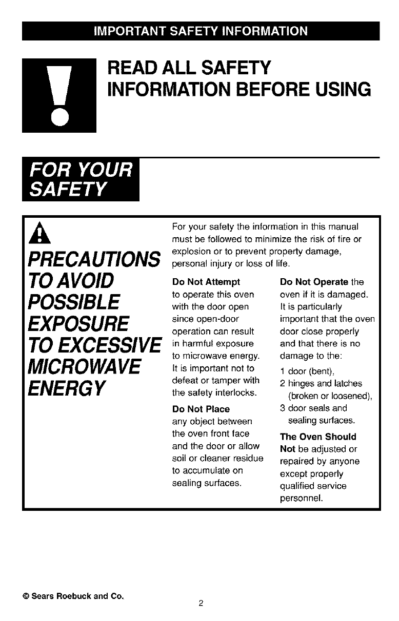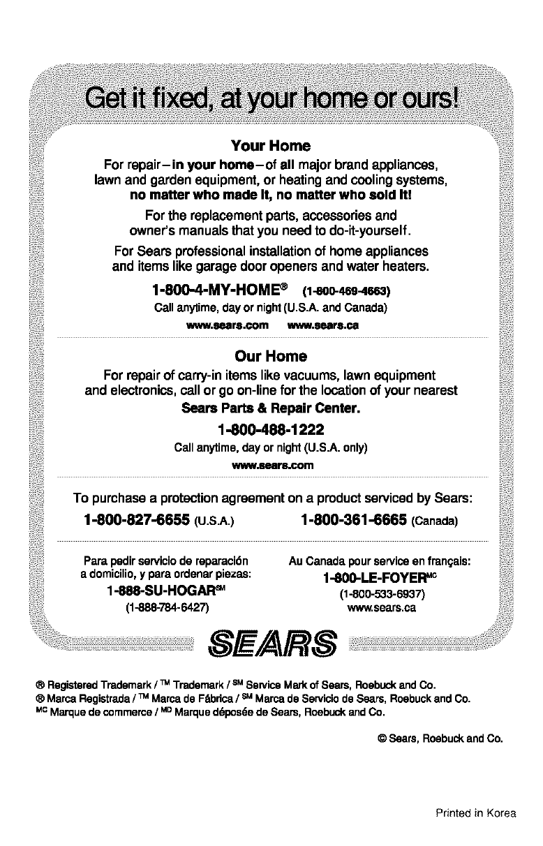 ®Registered Trademark /TM Trademark /SMService Mark of Sears, Roebuck and Co.