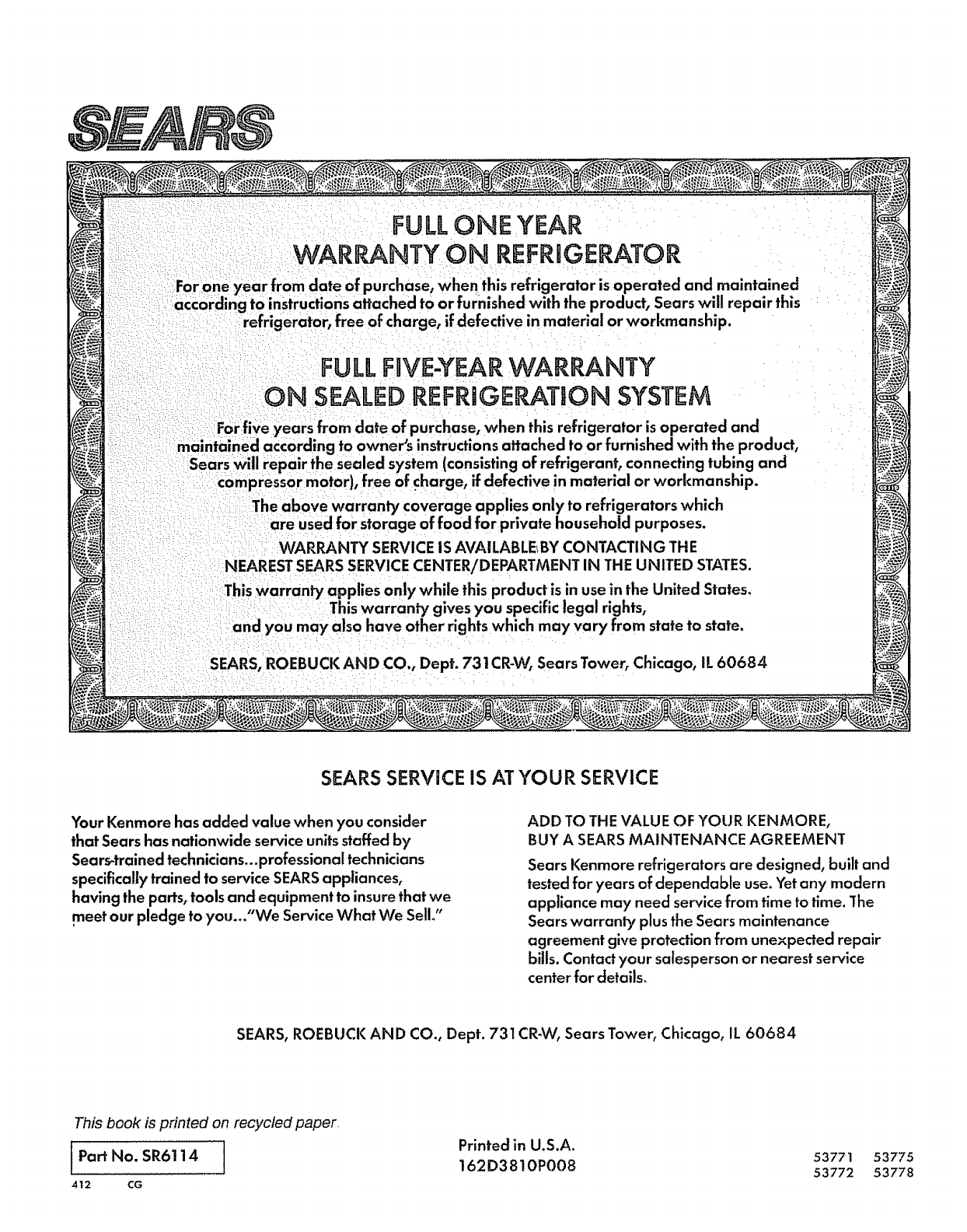 SEARS, ROEBUCK AND CO., Dept. 731CR-W, Sears Tower, Chicago, IL 60684