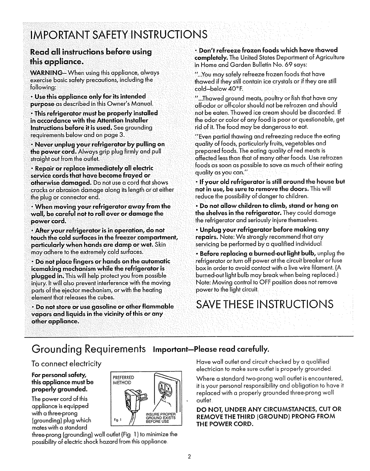 three-prong (grounding) wall outlet (Fig 1) to minimize the