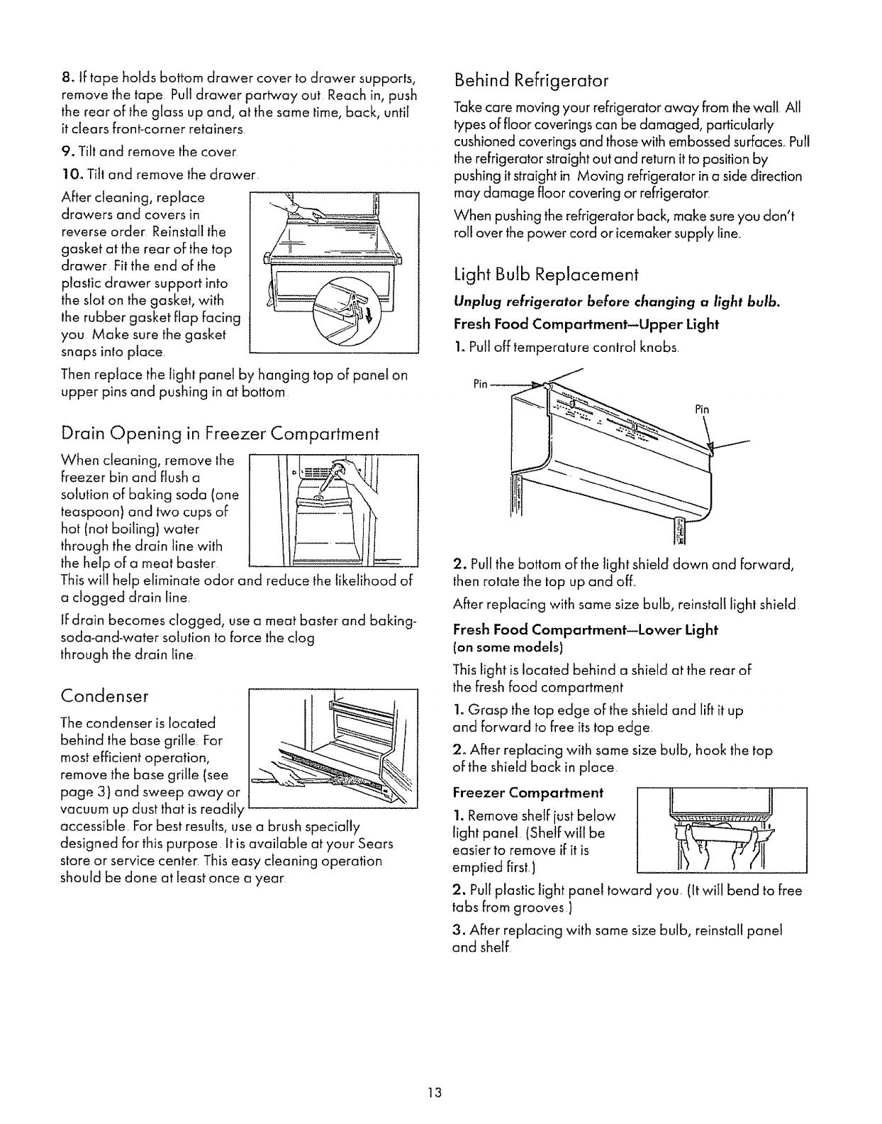 any ice on the freezerbottom and cleanthe drain Referto Care