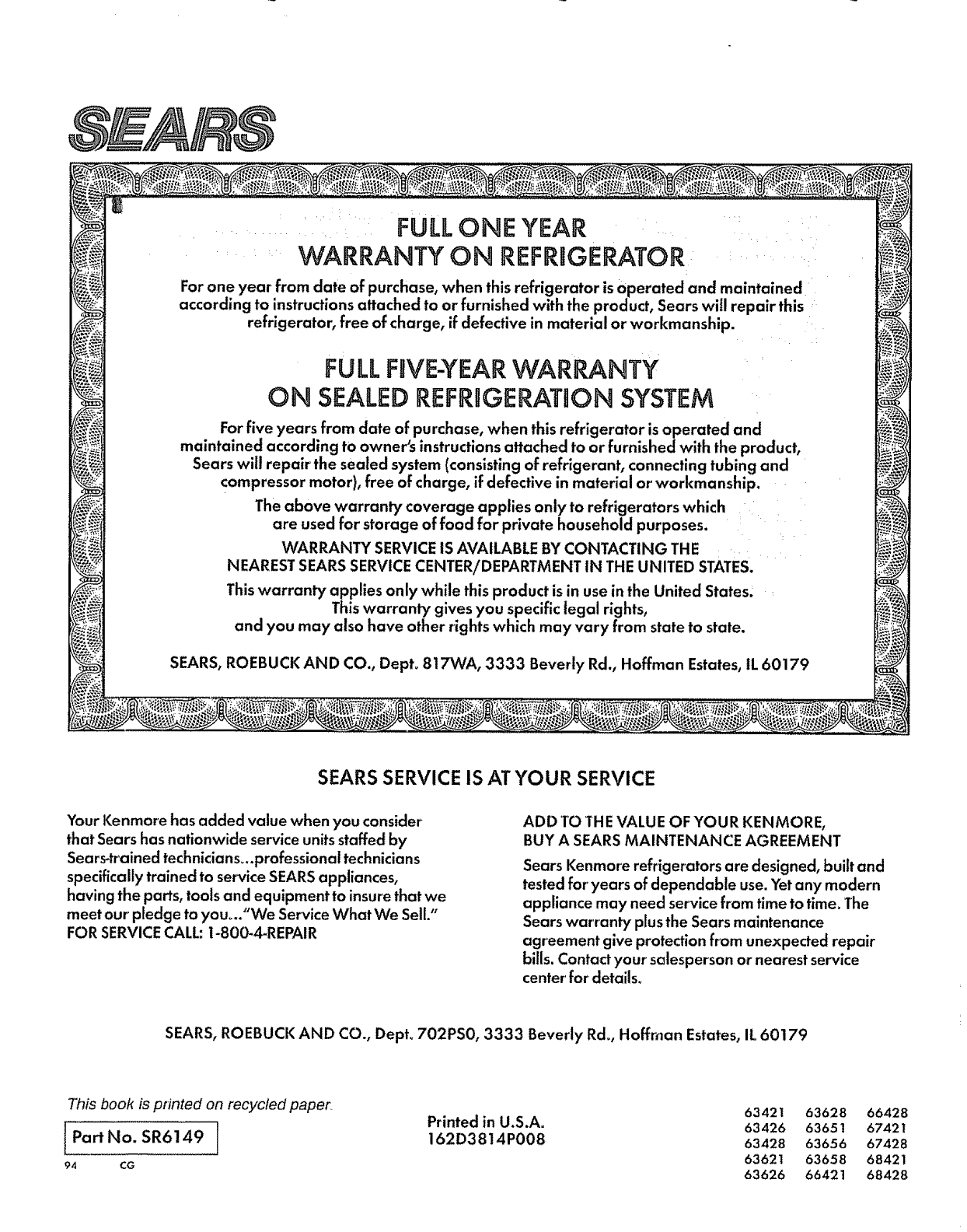 SEARS, ROEBUCK AND CO., Dept. 817WA, 3333 Beverly Rd., Hoffman Estates, IL 60179