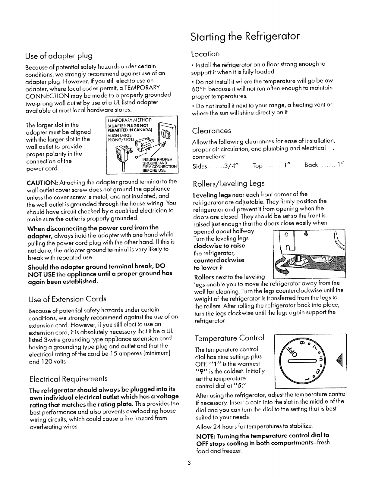 °Starting the Refrigerator ..........................................................3
