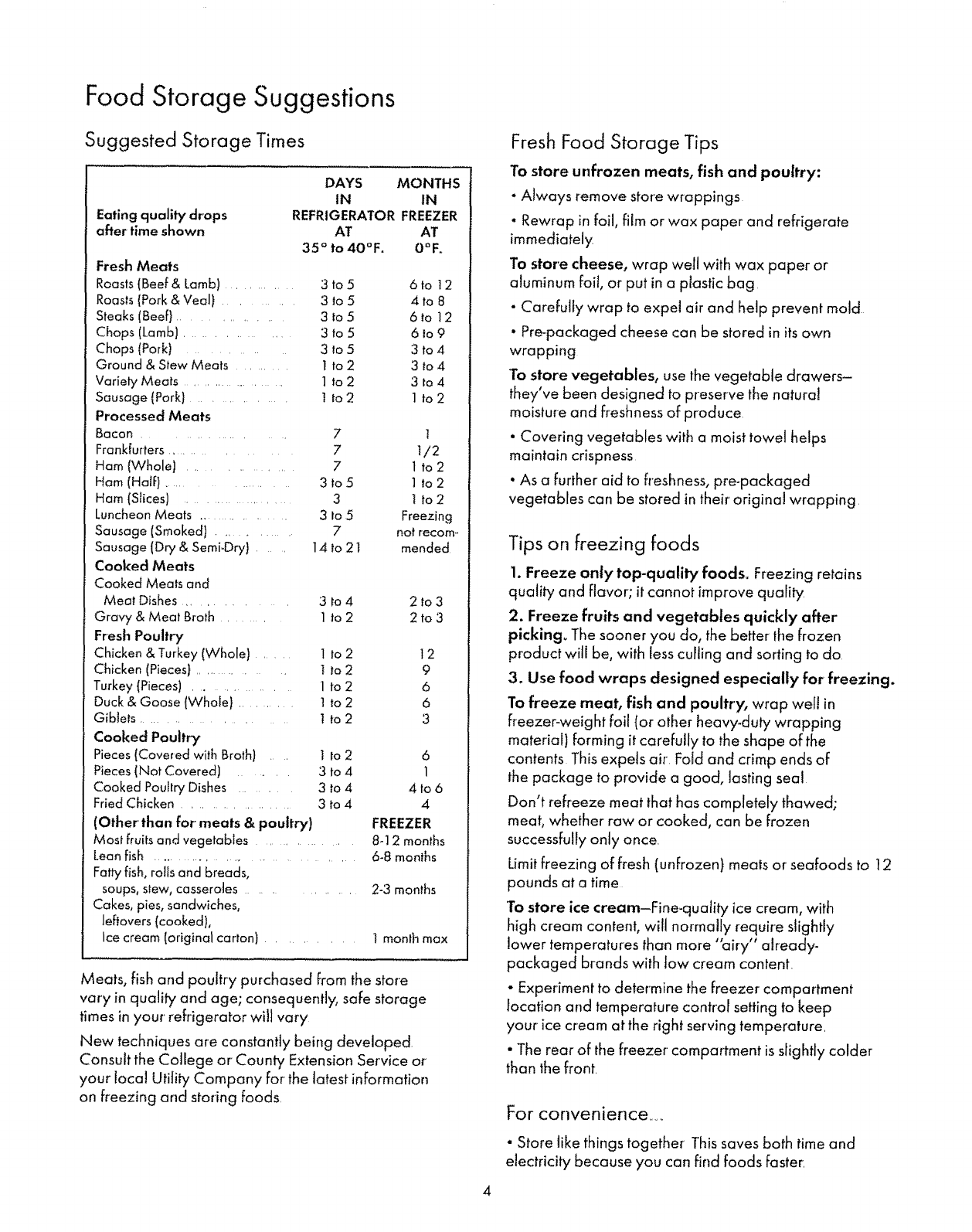 •Food Storage Suggestions ......................................4, 5