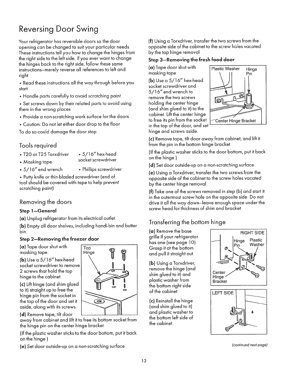 °Reversing Door Swing .........................................13-15