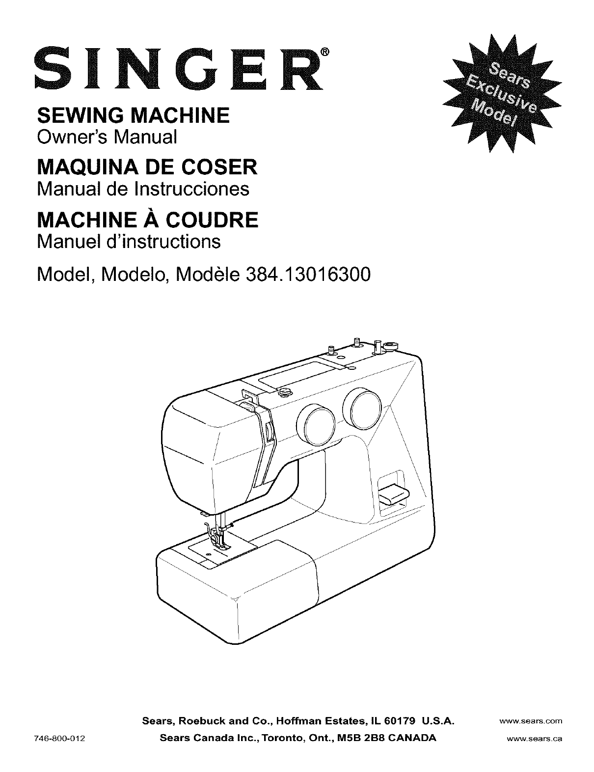 User Manual: Kenmore 38413016300 38413016300 KENMORE SEWING MACHINE - Manuals and Guides View the owners manual for your KENMORE SEWING MACHINE #38413016300. Home:Laundry & Garment Care Parts:Kenmore Parts:Kenmore SEWING MACHINE Manual