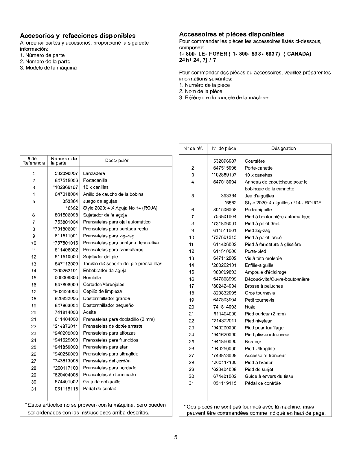 * Utitiser avec un fit & coudre standard no. 50 darts Ia canette.