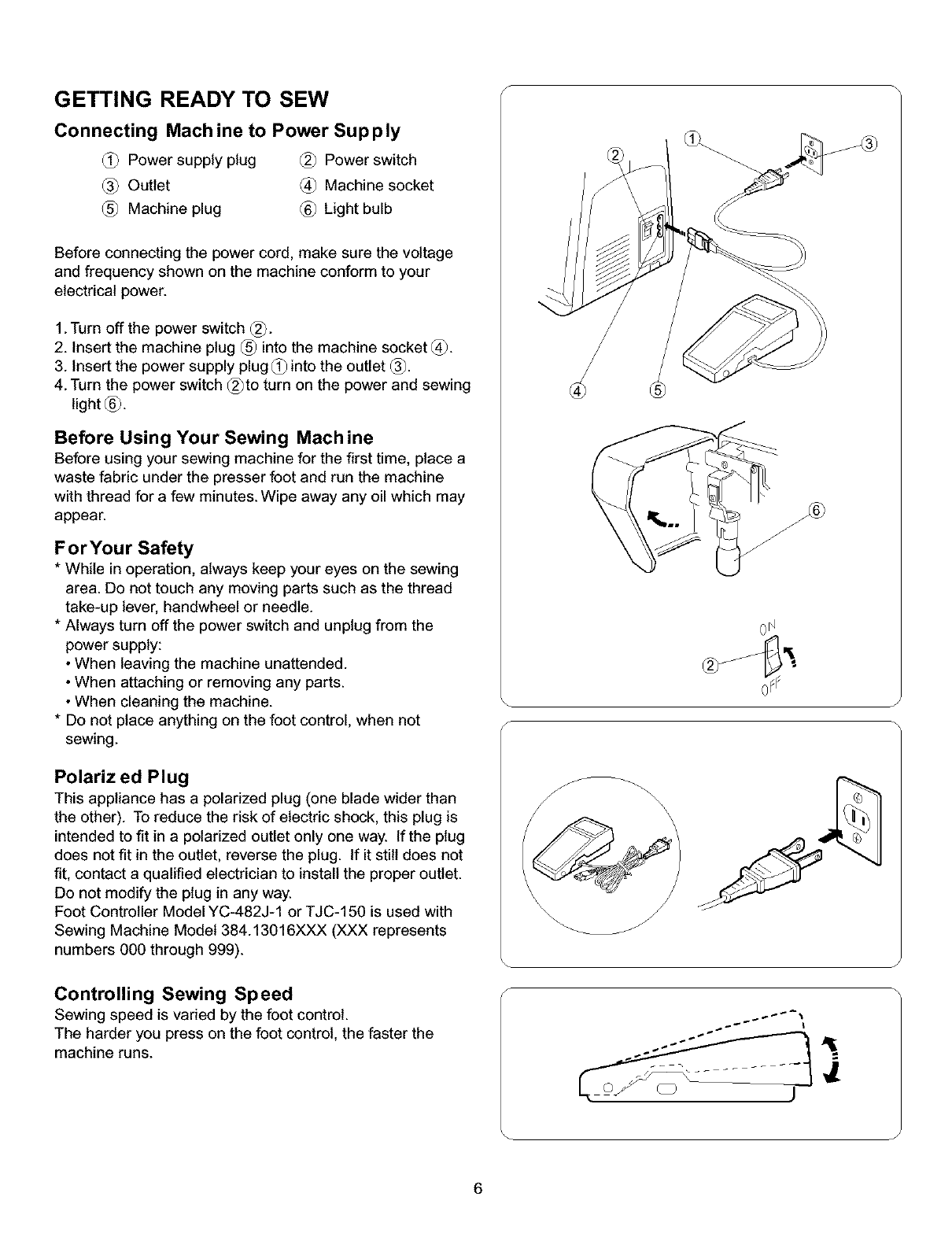 3. Never operate this sewing machine if it has a damaged cord or plug, if it is not working properly, if it has been