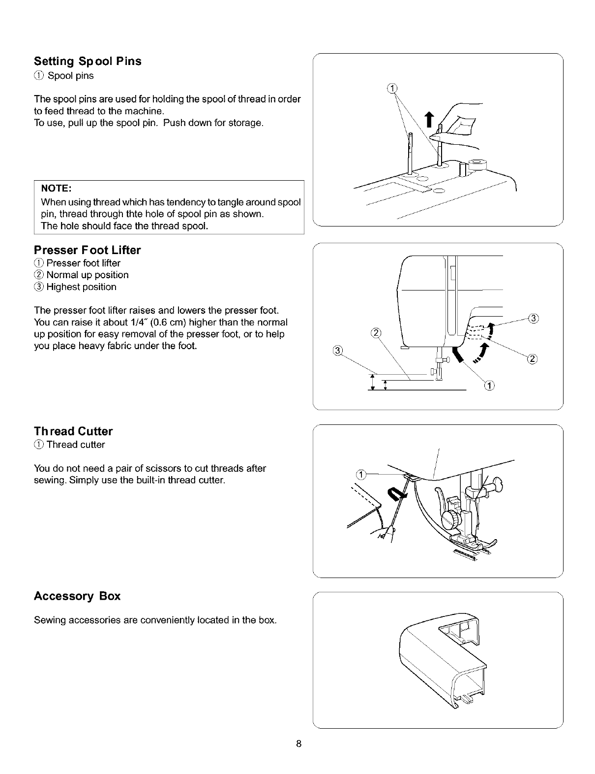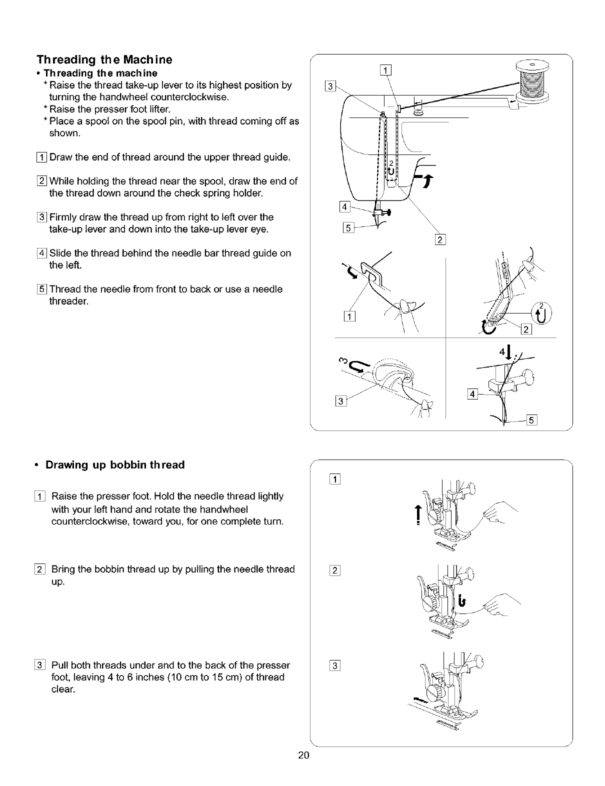 changing the needle, threading the bobbin, changing the presser foot, and the like.