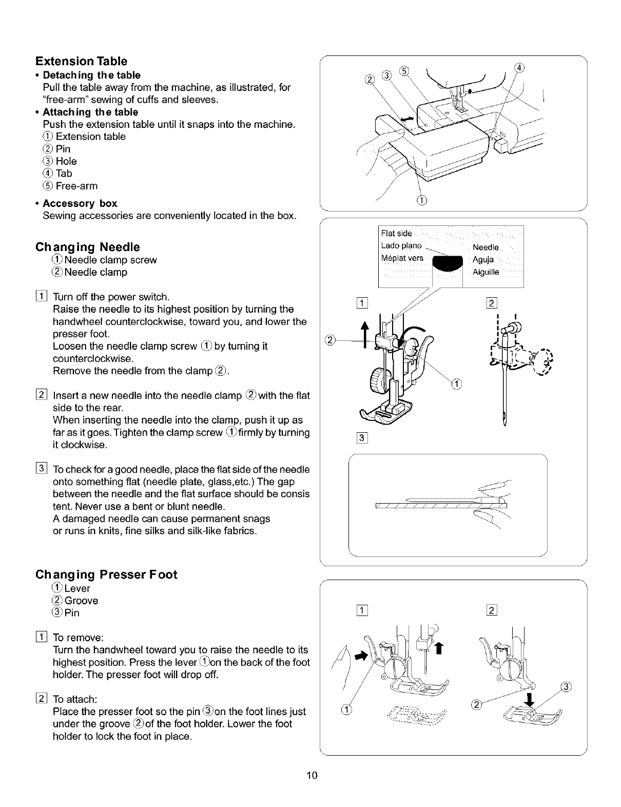 10. Mantenga los dedos alejados de todas las piezas m6viles.Tenga especial cuidado alrededor de la aguja de la
