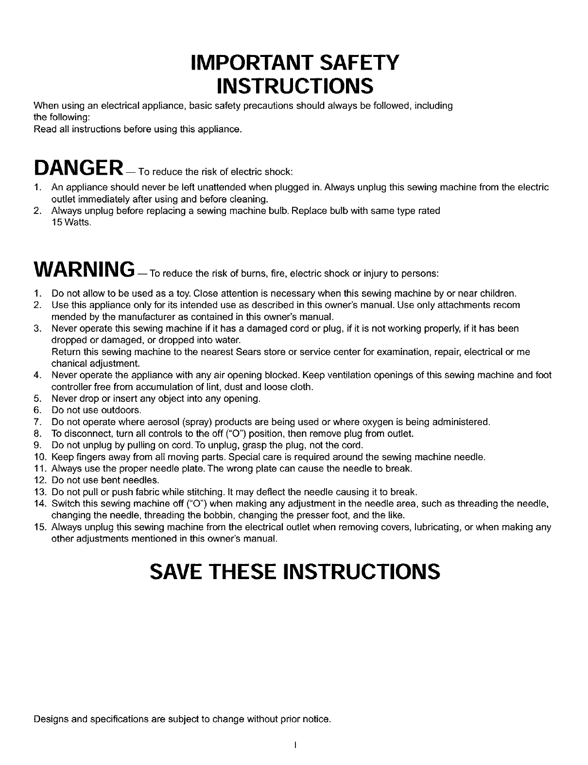 1. Do not allow to be used as a toy. Close attention is necessary when this sewing machine by or near children.